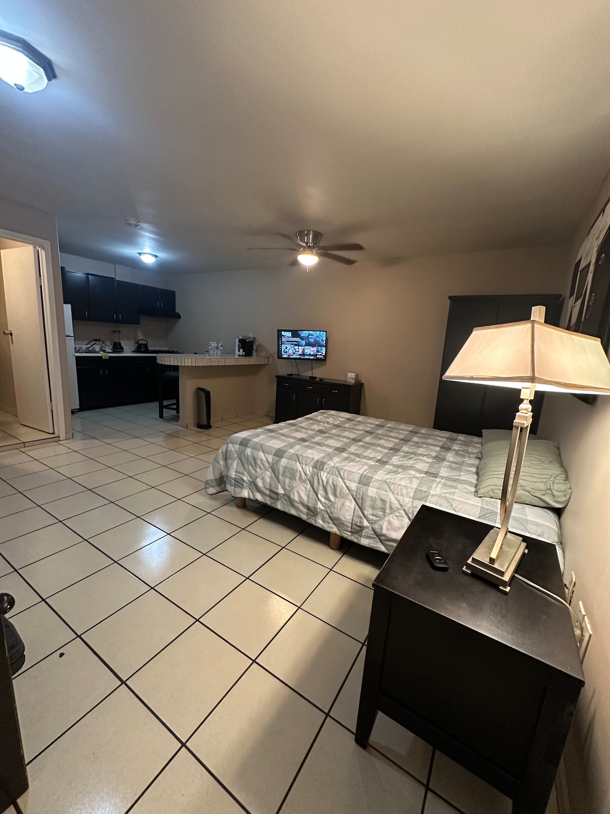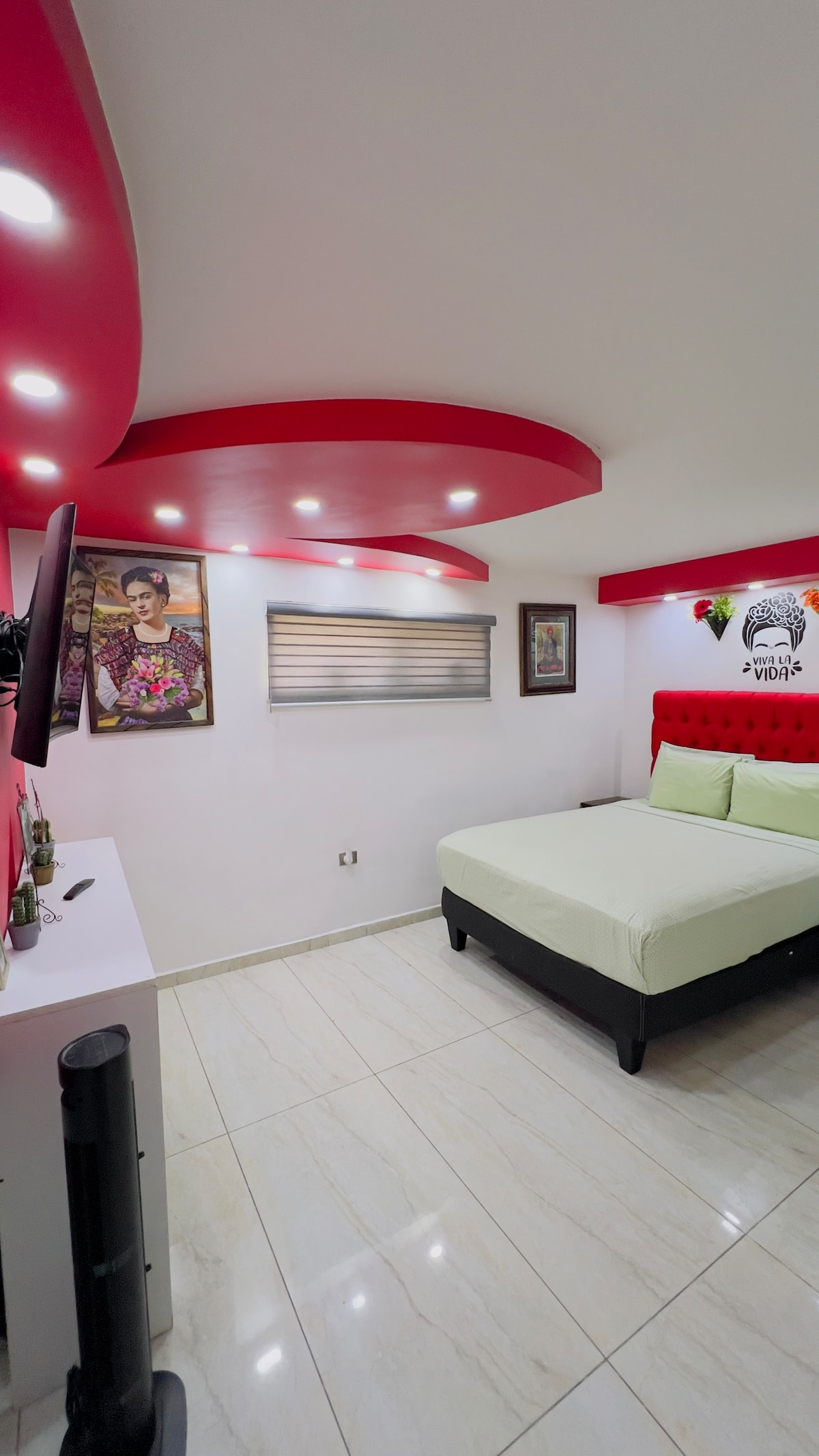 Comodo departamento en planta alta dentro de INSTALACIONES COMPLETAMENTE FAMILIARES en el este de la ciudad de tijuana, ten una estancia tranquila y comoda. ✅NUEVO : A/C en habitación ❄️ FRIO Y CALIENTE Descansa dentro de nuestra habitacion con una cama matrimonial memory foam y sofa cama matri, disfruta del servicio de HBO y Prepara tu comida favorita con los utencilios que dejemos para ti y tu familia! Contaras con un amplio parking en donde tus autos estaran seguros toda la noche
