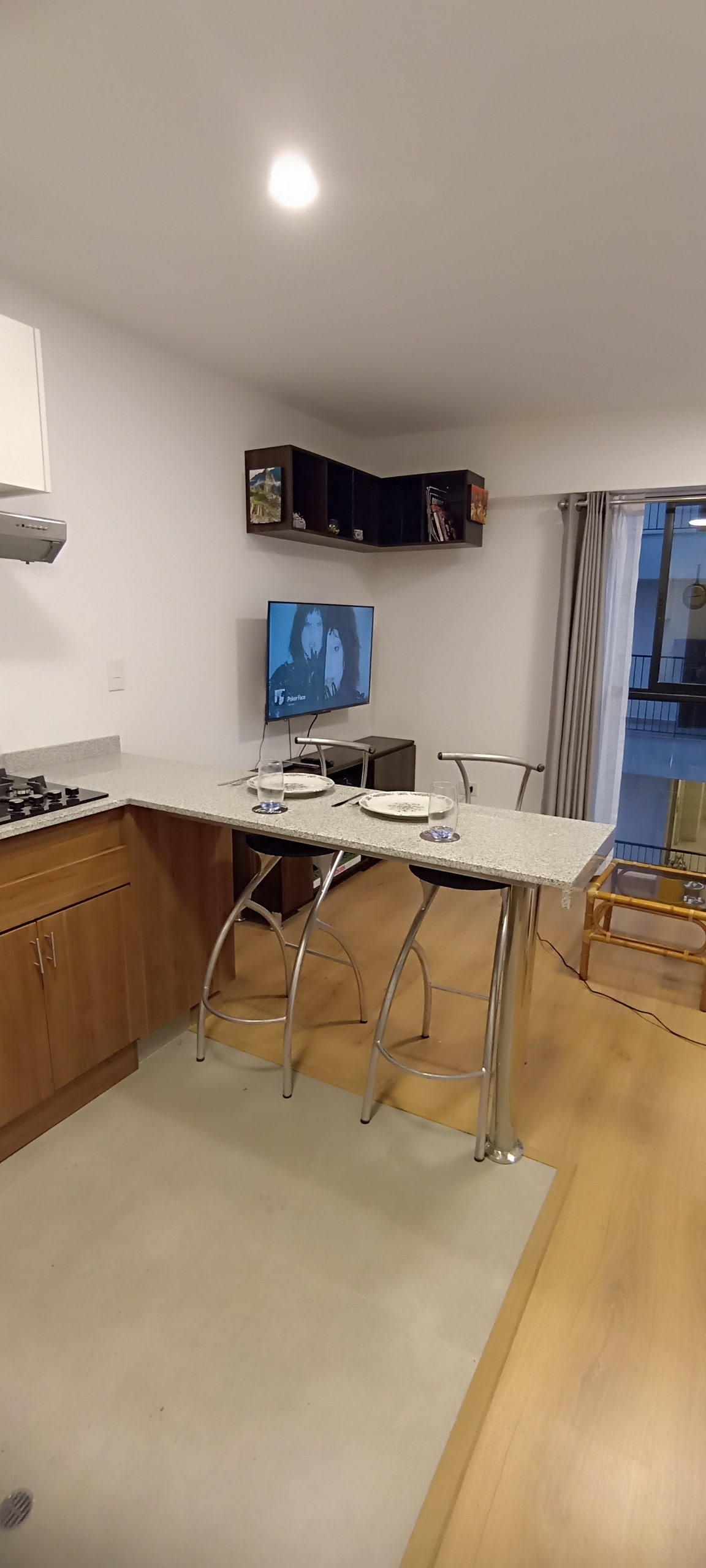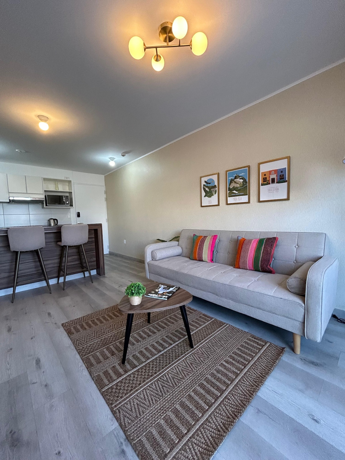 Cozy mini apartment fully equipped and located in the best district of Arequipa, just 3 blocks from the main malls, banks, restaurants and entertainment venues, 4 blocks from the Plaza de Cayma and very close walking to the Plaza de Yanahuara; very warm, lighted and ventilated; with views of a spectacular and unbeatable sunset from the living room and views of the imposing Misti volcano from the rooms. It is located on the fifth floor without an elevator at the moment.
