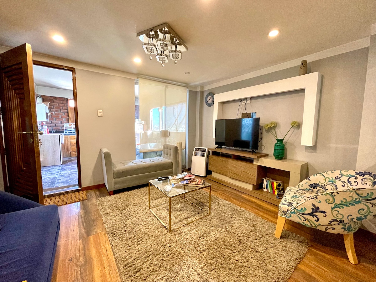 Welcome to your perfect stay in Cayma, Arequipa! This brand-new modern and cozy mini-apartment offers everything you need for a comfortable and stylish stay: Features: Equipped kitchen, living room, comfortable bedroom, & workspace. Elevator access: no stairs to worry about. Panoramic rooftop View of Arequipa and the 3 volcanoes! Near malls, financial districts, & clinics Close to best neighborhoods , Scenic viewpoints & city center (15 min) This place was designed with love and attention.