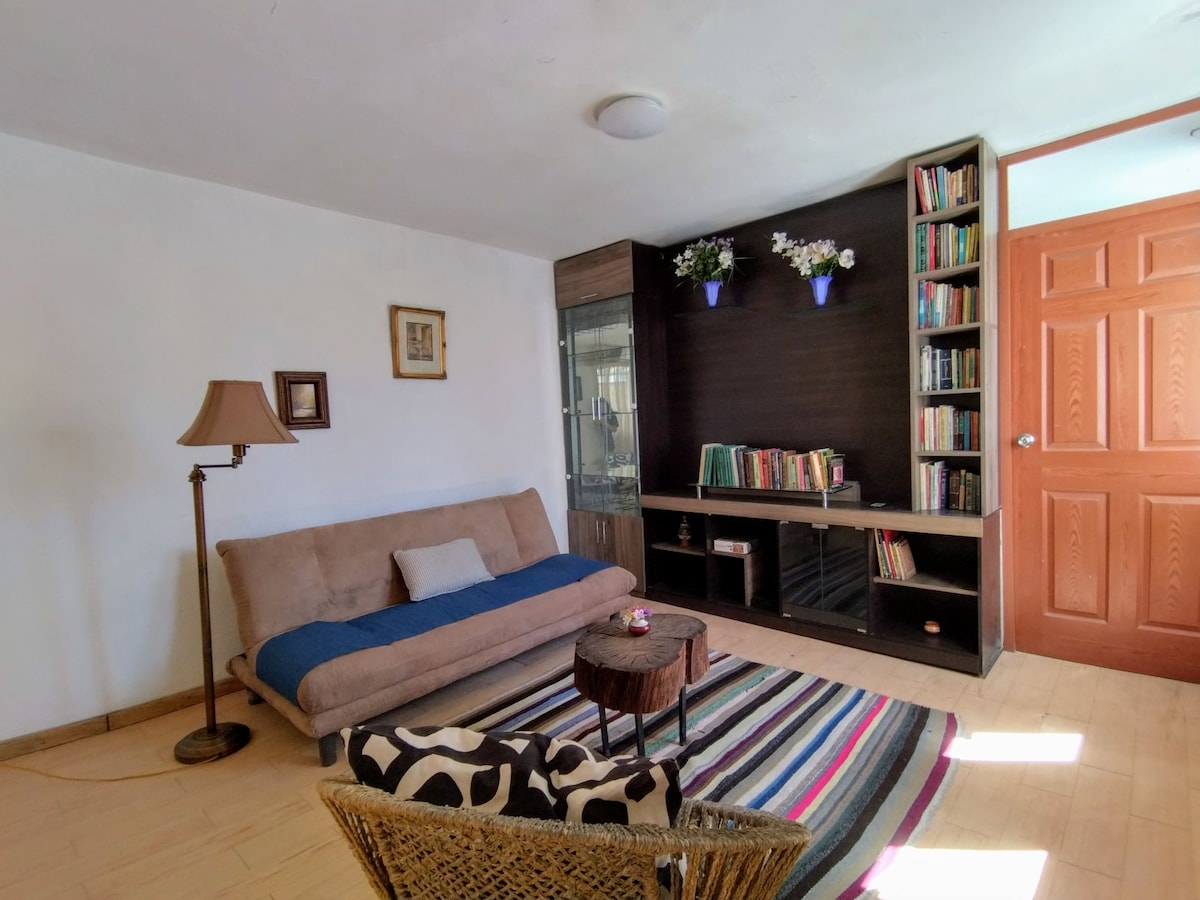 Cozy suite with amazing views in historical Yanahuara district. Perfect for a couple, 3 friends or a family of up to 4, looking for luxury and security. Enjoy a gourmet kitchen, huge terrace with outdoor living and dining room, steps from Plaza Yanahuara. Toys, books and small pool for the little ones to enjoy. Maps and recommendations for guests. We are located on a private gated street, with 24/7 security and a quiet that is a rare experience in bustling Arequipa.