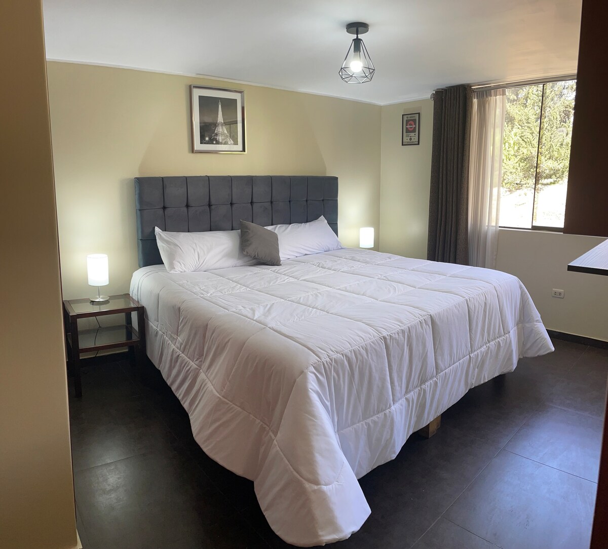 Departamento totalmente equipado en un moderno y exclusivo edificio, ubicado en uno de los distritos más exclusivos y seguros de Arequipa. A pocos minutos de la Plaza de Cayma y rodeado de restaurantes turísticos. Cuenta con TV en sala y dormitorio, cama queen, internet de alta velocidad, agua caliente, cocina equipada, además de shampoo, jabón y amenities necesarios para una estancia cómoda. Fácil acceso a transporte público desde la puerta del condominio.