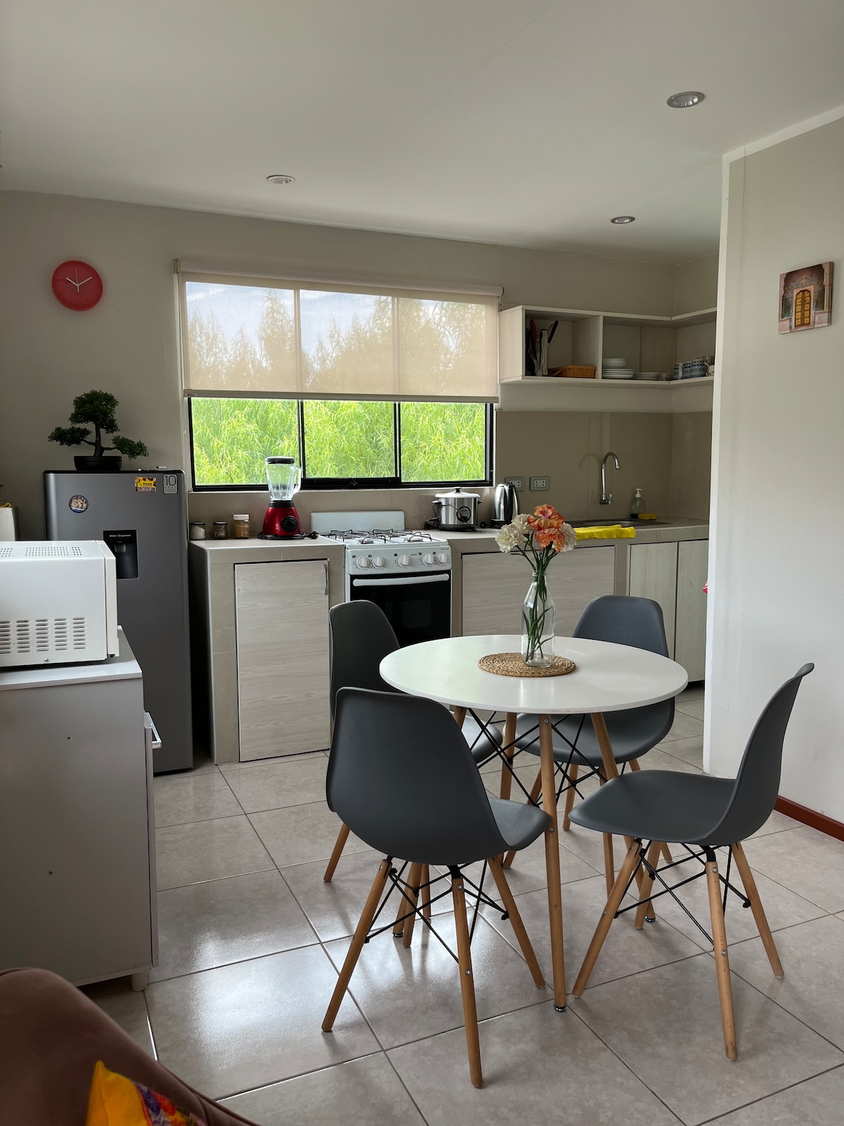 Disfruta de los mejores atardeceres de Arequipa en un pequeño pero calido monoambiente. Incluye habitación principal con sala y escritorio, mini kitchen, baño privado y terraza. Cuenta ademas con Airfryer, horno microondas, licuadora, sanguchera entre otros electrodomésticos, espejo de cuerpo entero, tv 55", equipo para ejercitarse Los servicios de parrilla, sombrilla y lavandería tienen un costo adicional, consultar previamente.