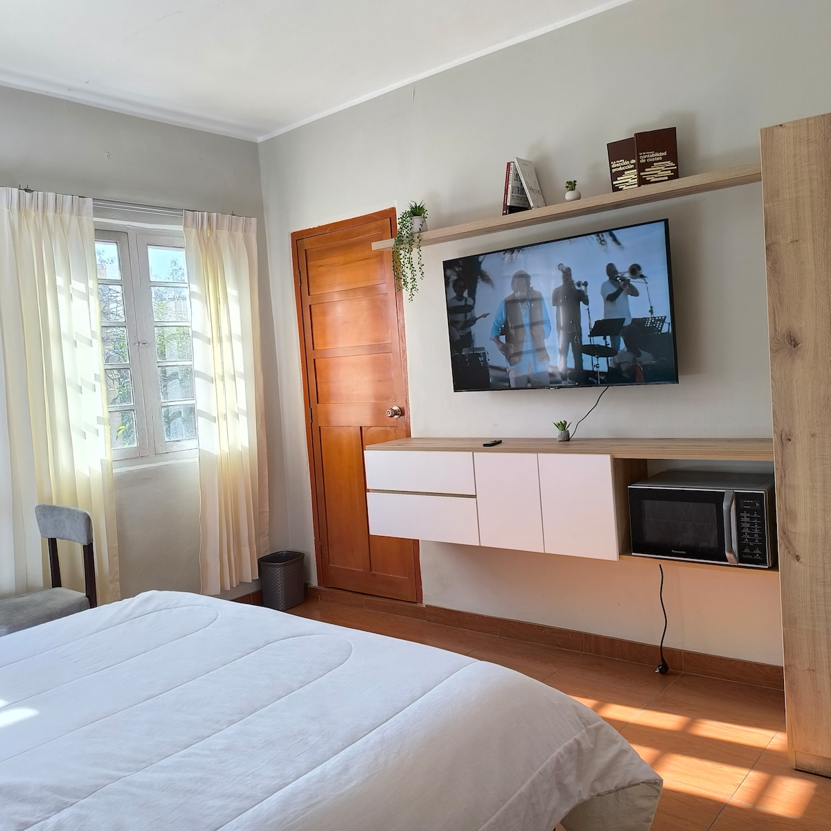 Disfruta de este alojamiento de estreno en Cayma, a 10 minutos del centro de Arequipa. Ubicado en un condominio seguro, ofrece gimnasio y sala de aeróbicos. La habitación cuenta con una cama queen, closet e implementos de calidad para un descanso ideal. El baño es completo y está perfectamente equipado. La sala y kitchenette, con tonos cálidos y un estilo moderno, brindan armonía y confort. Además, su balcón privado permite disfrutar de lindas vistas y del aire fresco de Arequipa