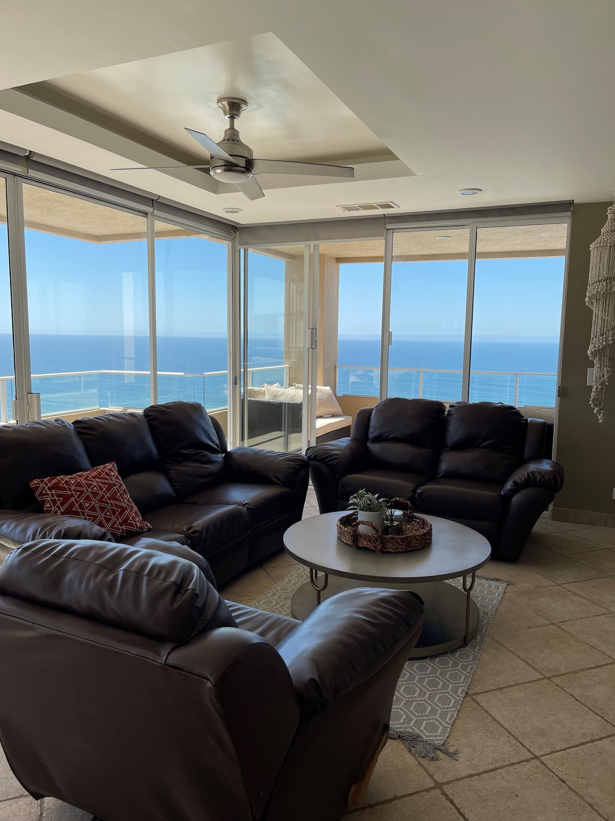 Breathtaking views! Pool and hot tub overlooking Pacific Ocean. World class surfing right out front! Walk right out of unit with no need to hassle with elevators Maximum of 2 adults over 18 (may have 4 total guests if kids) Not a party atmosphere with mostly owners at complex. Gated complex that is very safe and secure! 20 minutes to amazing oceanfront golf course baja mar! Note that check in for any units in this complex at club marena must be before 5pm or guards will not let you in.