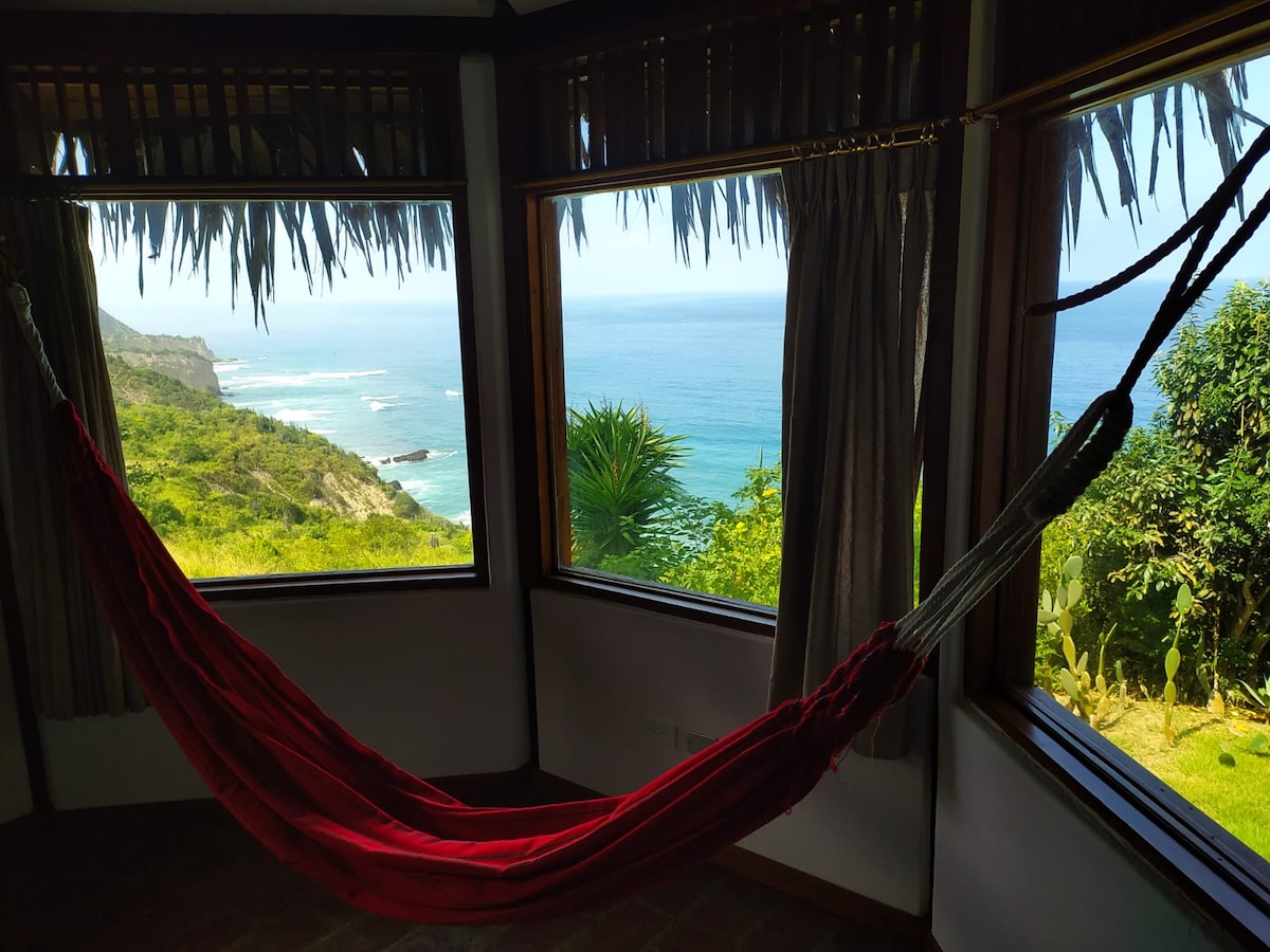 Disfruta de la mejor vista de Ayampe, un espacio hermoso. Ubicado a 7 minutos caminando de la playa, es el lugar perfecto para desconectar y reconectar contigo mismo. Relájate mientras observas las olas. Medita o practica yoga en el jardín delantero. Disfruta del sonido del océano en una mini suite equipada con todo lo necesario para cocinar y con café gratis ☕️. Hay cervezas y vino 🍷 disponibles de venta en la unidad. También contamos con parqueo privado y cerrado con cámaras de vigilancia.