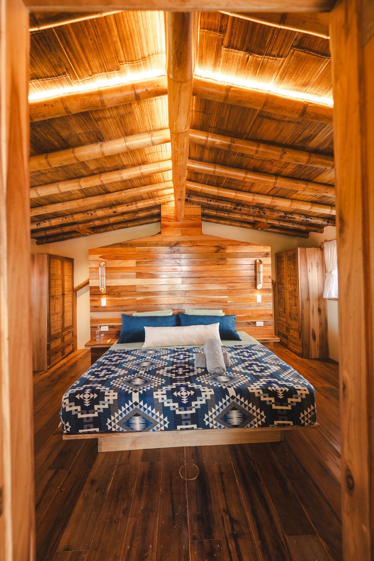 Esta cabaña hecha con materiales naturales, está situada en la cima de una colina, al borde de una reserva forestal y proporciona maravillosas vistas panorámicas de la playa de Ayampe (con su emblemático Islote de los Ahorcados) y el bosque tropical. Desde ella podrás contemplar noches claras y llenas de estrellas, dormir con el rugido lejano del mar, despertar con el sonido de las aves tropicales y disfrutar de los mejores atardeceres que ofrece el Pacífico ecuatorial.