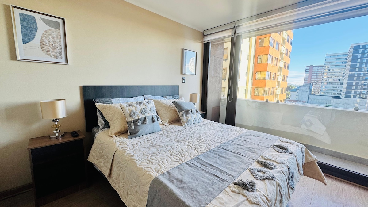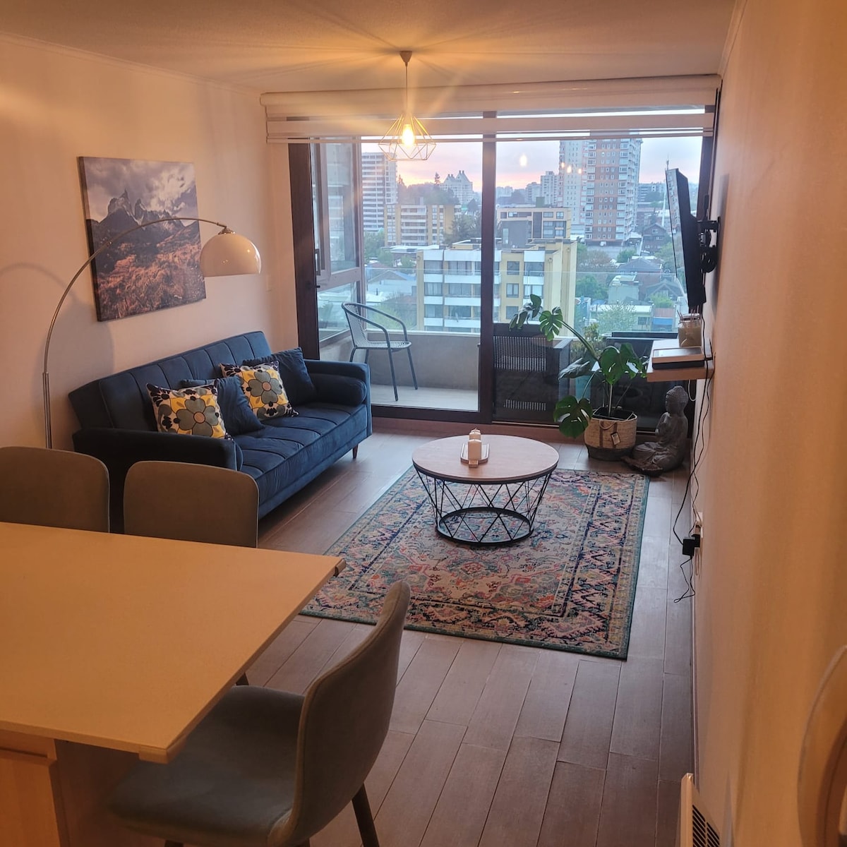 Disfruta de la tranquilidad de este departamento, ubicado en el corazón de la ciudad, con excelente conectividad a todos los lugares de interés. A pasos de tiendas, universidades, supermercados, restaurantes, cafeterías, pubs, parques, bancos, municipalidad, comisaría y mucho más. Tendrás estacionamiento subterráneo de uso personal, cocina equipada, vista a la ciudad desde 6° piso y completa autonomía en tu llegada y estadía. Estaré dispuesto a responder tus dudas y brindarte tips de la ciudad.