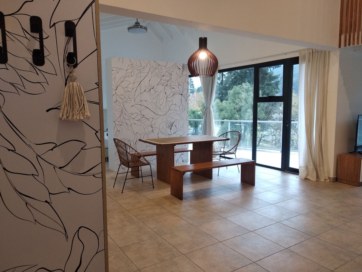 Amplio, luminoso, moderno con vista panorámica desde cualquier ambiente. Podrás moverte a pie por el pueblo. Tendrás internet por fibra óptica y 2 escritorios de trabajo. A 150 metros de la plaza principal y restaurantes. Parada de colectivo para ir al lago a pocos metros y a 2 cuadras para ir al centro de ski*. A 5 cuadras de la terminal de ómnibus. 👉*Reduce el servicio al centro de ski en temporada baja.