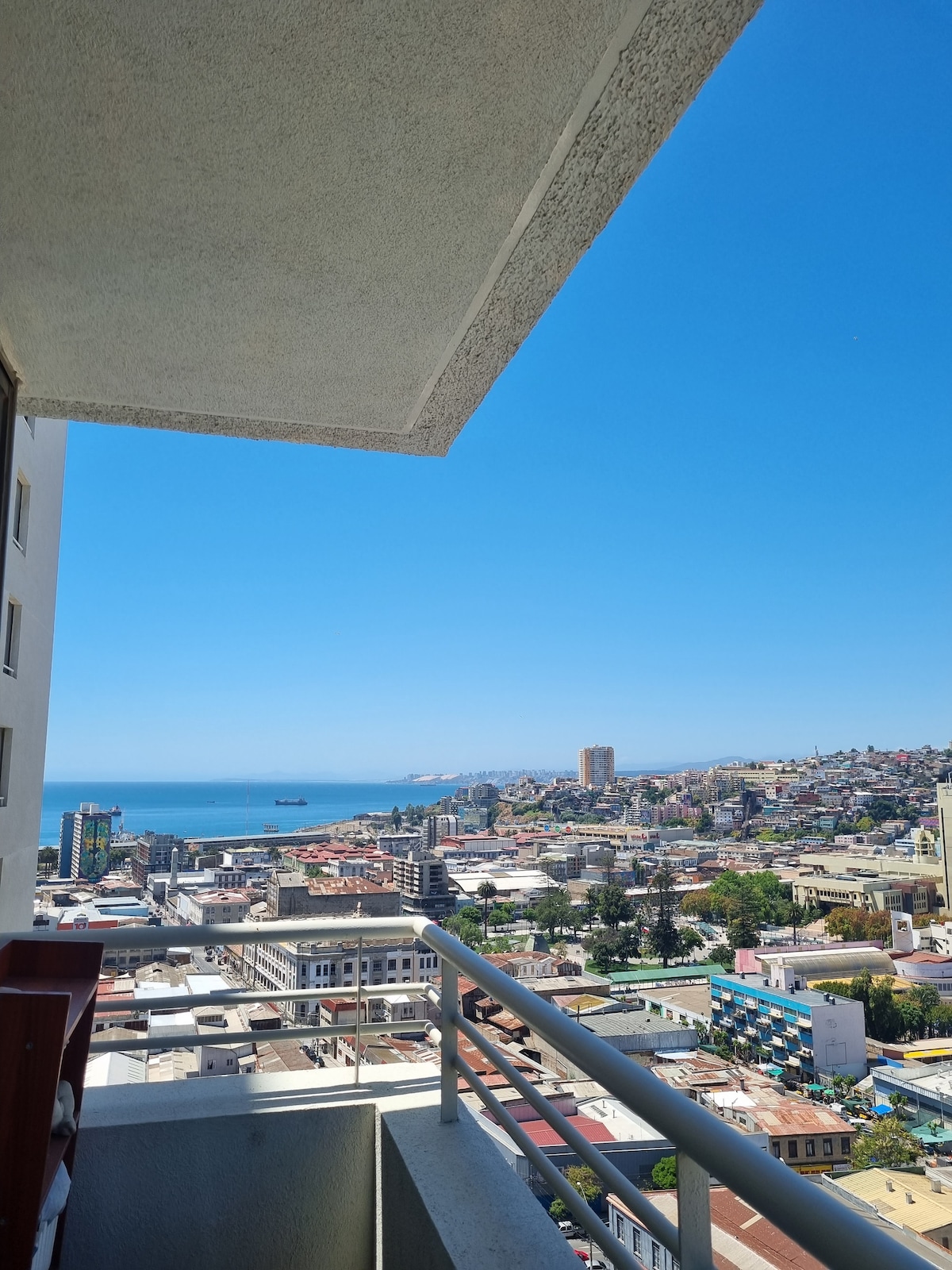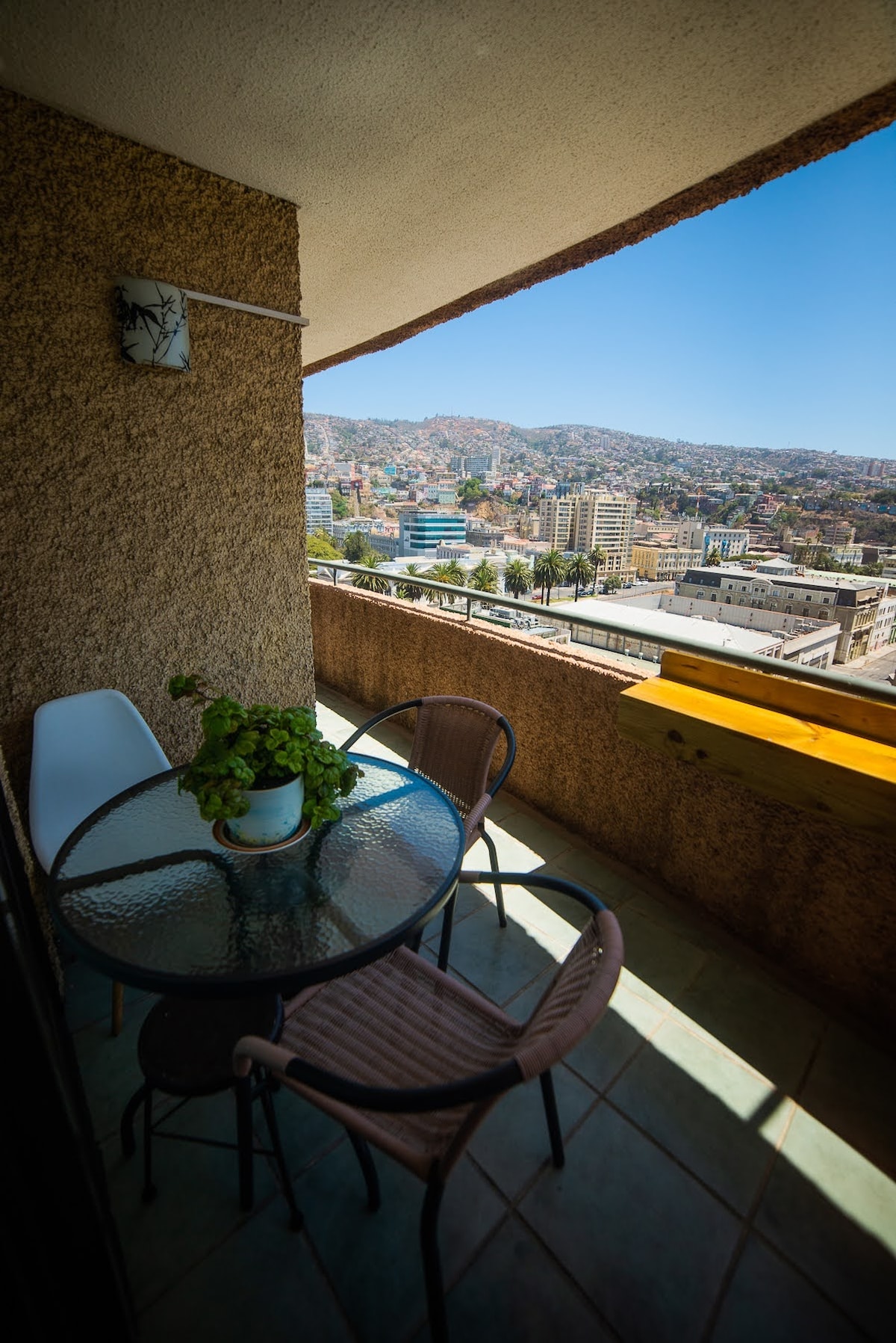 可俯瞰瓦尔帕莱索海湾和山丘的公寓