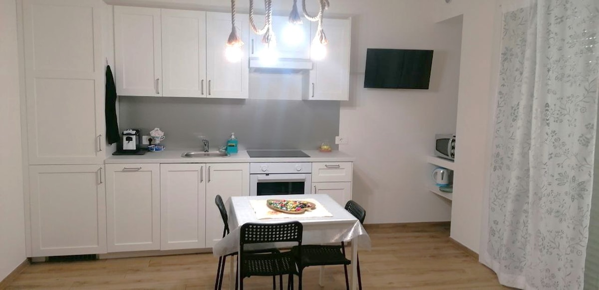 Intimo appartamento situato in zona strategica adiacente al centro di Cesenatico nel quartiere di "Boschetto", a 150 metri dal mare. L'alloggio offre due camere con 2 letti matrimoniali e uno singolo; cucina perfettamente fornita con frigorifero, forno, utensili vari, stoviglie, piano cottura e TV; un bagno completo con box doccia e lavatrice. Vi è una zona barbecue in comune. Ingresso privato e parcheggio gratuito all'interno della proprietà. Sono ammessi animali domestici.