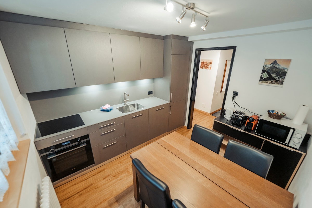 Warm, comfortable apartment close to center/station/ski, very light, with stunning view of the Matterhorn. Full view from bedroom, living-room and of course large balcony. Modern equipment : secure wifi, 2 big flat screen tv's, dock bose, etc..