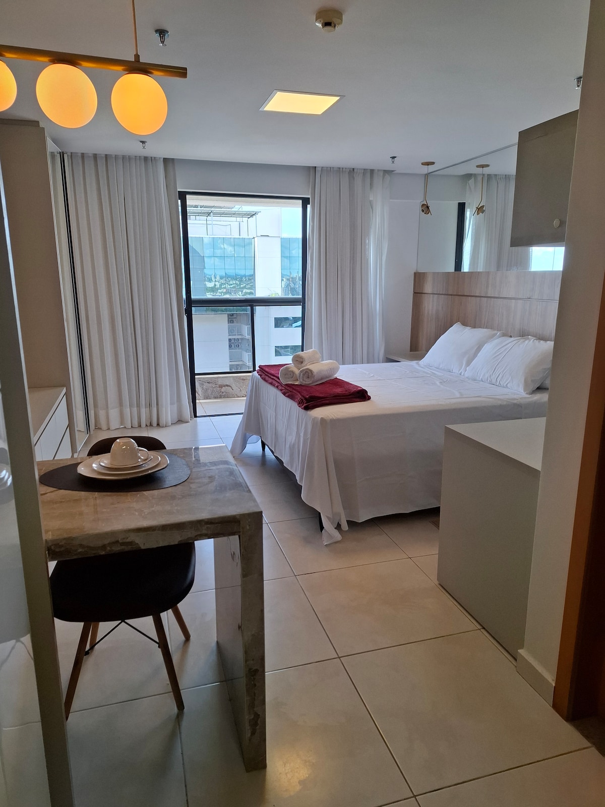 Descanse em um espaço clean, tranquilo e climatizado. Apartamento compacto e completo, ideal para quem busca conforto e praticidade. Localização privilegiada: a 1 km da Av. JK, 6 min do Capim Dourado e a poucos metros da Praia da Graciosa. Check-in remoto para sua comodidade.