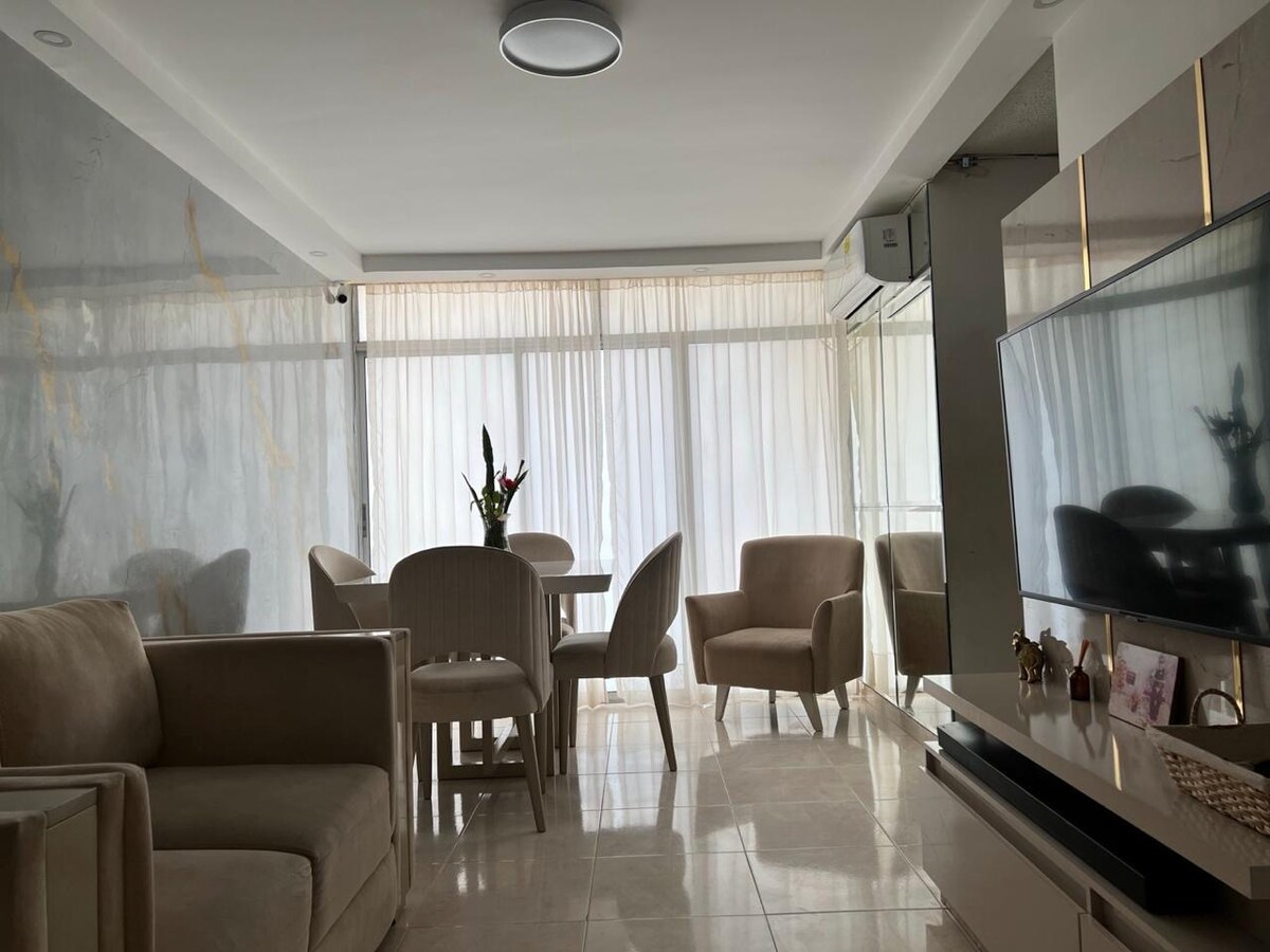 💫 Elegant & relaxing near Mayales Mall 🧘 🛋️ Living Area: Furnished, large TV, high-speed Wi-Fi, and balcony with mountain views 🏔️ 🍽️ Kitchen: Fully equipped with breakfast bar, fridge, and blender. 💦 Laundry: In-unit washing machine. 3 Bedrooms (all with AC ❄️): 🛌 Primary: Double bed, TV, closet, and private bathroom. 🛌 Secondary: Two rooms with double beds and closets. 🚿 Guest bathroom in the hallway. The perfect blend of comfort and style!