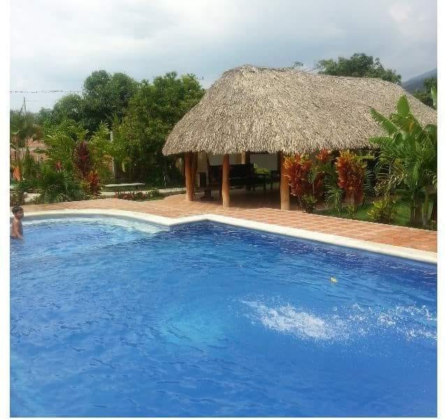 Cabaña en pueblo bello muy bonita, con piscina, Kiosko, dos habitaciones cada una con baño, espacio para hasta 6 personas