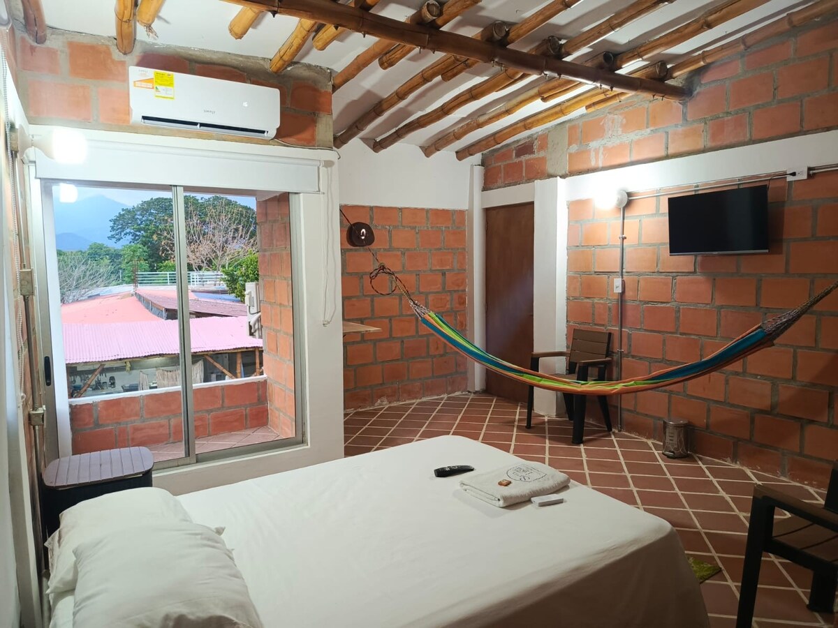 Habitación privadas con 1 cama doble (1.4m ancho), aire acondicionado y baño interno. Espacios sencillos y funcionales, sin ventanas, ideales para descansar cómodamente después de un día de actividades. Servicios incluidos ✔ Aire acondicionado ✔ Cama doble ✔ Televisión ✔ Wifi con buena señal ✔ Baño privado ✔ Espacio práctico para una estadía tranquila Ideal para: Viajeros que buscan un alojamiento básico, cómodo y bien ubicado, sin lujos. Desayuno incluido en temporada de Festival Vallenato