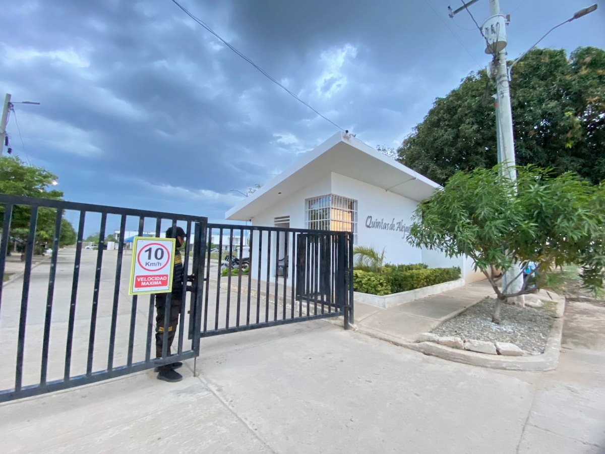 Disfruta de esta casa premium ideal para familias, ubicada en zona norte de Valledupar, cerca al río Guatapurí y principales parques. Cuenta con 3 habitaciones con aire acondicionado, parqueadero privado y conjunto cerrado con seguridad 24/7. Un espacio tranquilo, cómodo y seguro para tu descanso, con fácil acceso a atracciones locales y atención cálida que hará de tu estadía una experiencia inolvidable. ¡Tu hogar lejos de casa!