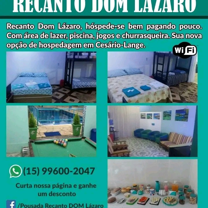 Chacara para alugar para lazer, 2 km do Castelo Park Aquatico e 11 km da Betel,Cesario lange, conta com uma casa com 3 quartos, sala e banheiro. No salão de jogos há uma cozinha equipada com fogão, geladeira, freezer, Utensilios de cozinha, micro-ondas. 2 quartos com 1 camas de casal e 1 de solteiro cada, além da mesa de sinuca e um banheiro com chuveiro. A área de churrasqueira conta,com mesas, bancos e uma churrasqueira de alvenaria. Ao lado se encontram dois banheiros e a piscina de 5x10m.