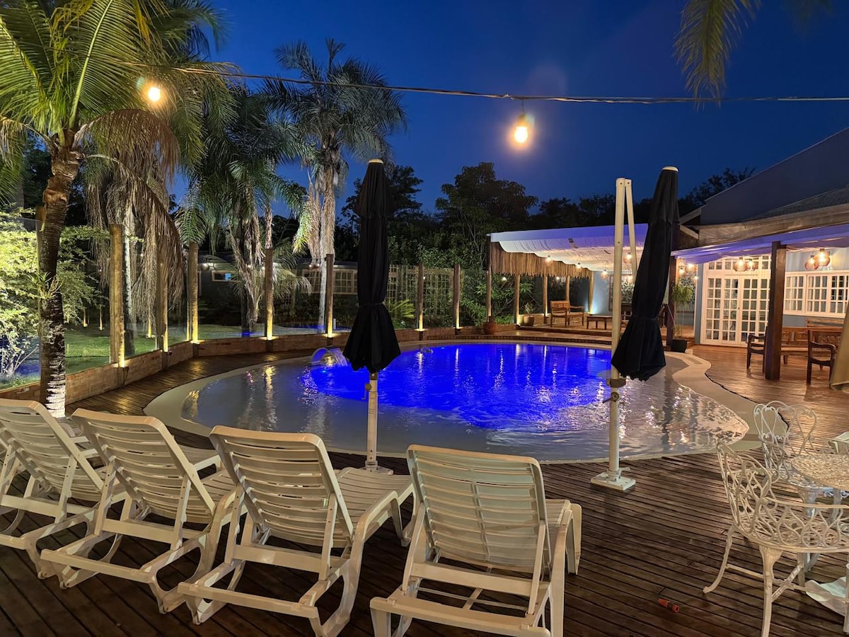 Linda casa no Cond. Resid Ecopark, Tatuí/SP. A casa possuí 3 quartos com ar cond e ventiladores de teto, sendo uma suíte, 1 banheiro social e 1 banheiro na área externa. Churrasqueira e forno de pizza, mesa de sinuca e pimbolim, piscina climatizada a 30°C e um playground particular de madeira. A casa dispõe de 5 vagas para carros, internet Wi-Fi 240mb e TV em todos os quartos. Para dias frios disponibilizamos lareira portátil para ser usada ao ar livre e também temos espaço para fogueiras