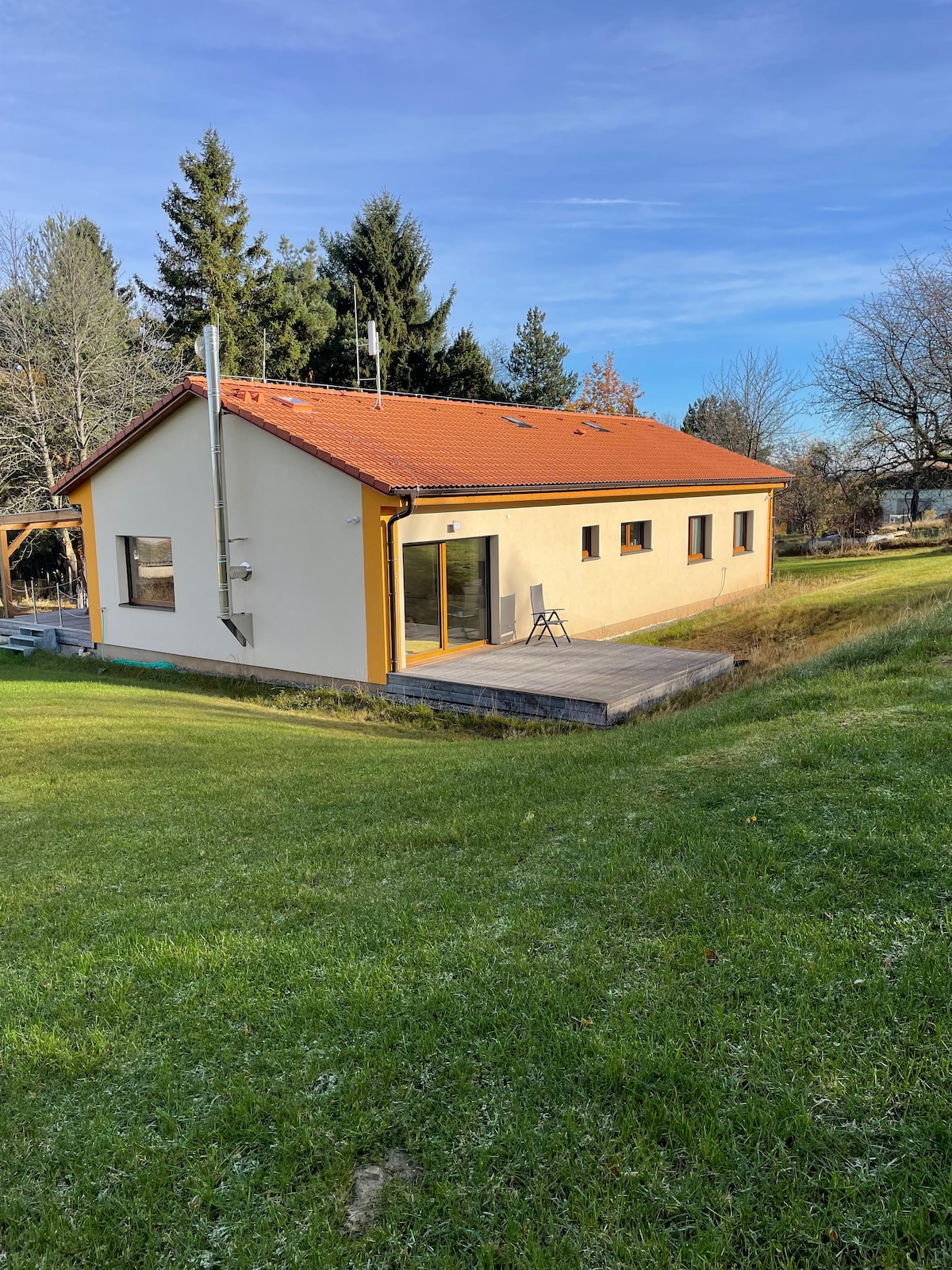 Brand new holiday house with big garage, style furniture, with 4 terraces, located just 120m from Windy point beach and YC Černá sailing club, best holiday location in Czech, Perfect for families and friends. Best spot in Czech for Yachting, Windsurfing, Kiting, MTB, etc. the largest water in Czech just in front of house. 100m2 living space, heated floors, 139cm Smart Led TV, Sat, Dish washer, Fireplace, 2x WC, Shower, washer, garage, Ping Pong table, barbecue stuff, 4x teraces, garden.