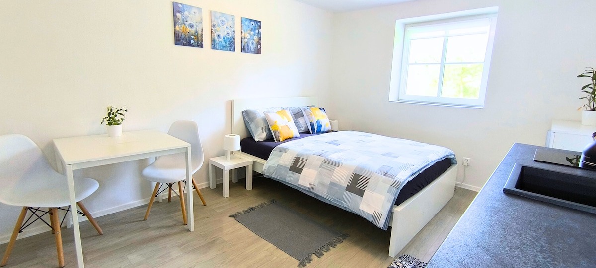 The stone house is over 150 years old and is furnished with historical furniture. It is located in a picturesque village with no car traffic, in the Blanský les Protected Landscape Area. The surrounding pristine nature invites peaceful walks. In our orchard, two horses graze, and in the herb garden, you can pick mint and lemon balm to brew tea. For breakfast, you can taste our homemade cheese, seasonal vegetables, and homemade bread from our neighbor. The apartment was renovated in July 2024.