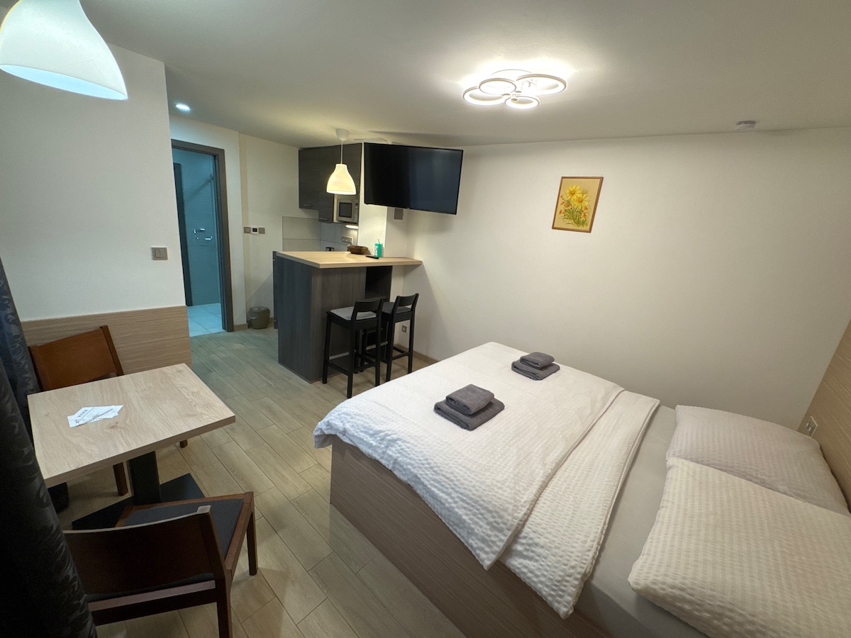 Tichý, romantický apartmán přímo v centru s výhledem na hrad má původní zrenovované dřevěné podlahy, je zde kompletně vybavená kuchyň se zařízením a kávovar. Apartmán má vlastní koupelnu s toaletou dohromady. SMART televize s Netflixem a silná WIFI .Kouření je zakázáno! PEJSKY kvůli historickým podlahám také NEDOVOLUJEME. Apartmán je koncipován jako částečně oddělený pokoj s manželským lůžkem a kuchyň s malým gaučem, kde se v případě potřeby může vyspat další osoba. Zvýšené přízemí,7 schodů.