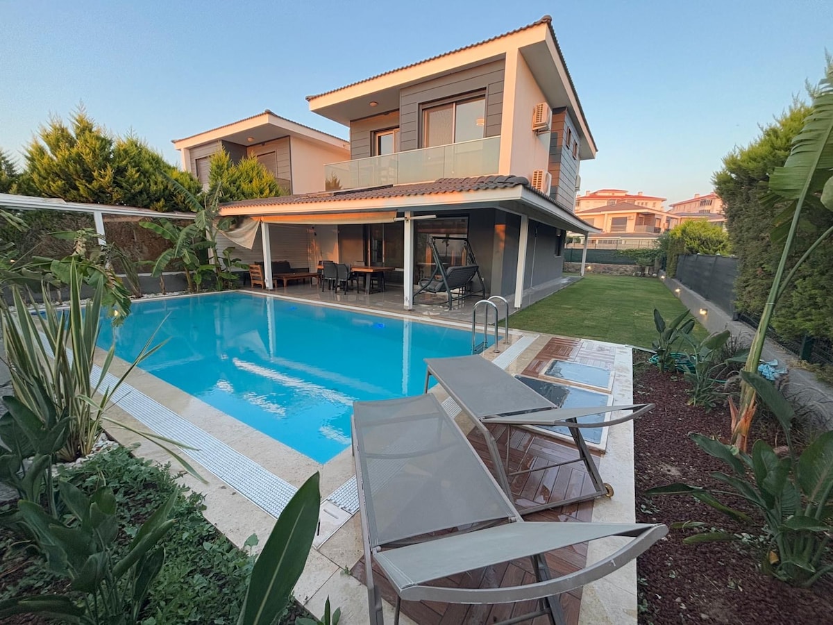 Çeşme Dalyan Sakızlı koyda 700 m2 köşe ve iki cepheli arsa içerisinde, 250 m2 kapalı oturum alanına sahip Geniş Tek Bağımsız Tripleks Villa. Tüm villa, büyük Müstakil Havuz, Açık Otopark Alanı, geniş bahçe, güneşlenme ve dinlenme alanları sadece size ait size özel. Yüksek ses, parti yada benzeri organizasyonlar yapılamaz. Aile için uygundur. Villamız Denize çok yakın yürüme mesafesin de full eşyalı temiz, sakin, geniş ve bakımlı bir villadır. Mutlu ve huzurlu bir tatil sizleri bekliyor.