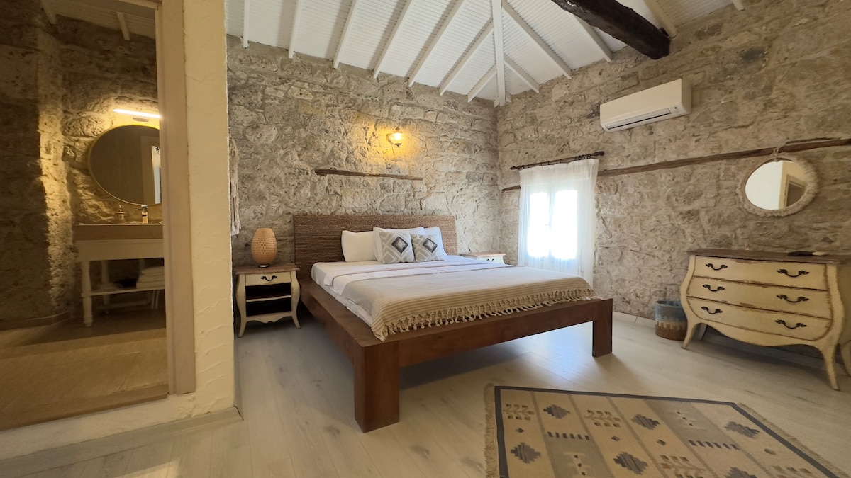 After ten years of experience in the center of Alaçatı, which is one of the most popular holiday locations in Turkey, a fresh boutique hotel management begins with a brand new approach. Approved by The Council of Monuments and designed entirely of natural stones in accordance with the 200-year history of Alaçatı, our hotel has a total of 8 rooms, 3 of which have bay balconies.