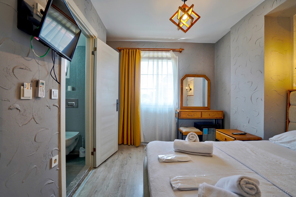 Explore a vibrant neighborhood of Alaçatı with this charmful bedroom as your resting place. Be amazed by the atmosphere of the streets surrounding the hotel, and let us help you with a place where you can rest comfortably after an intensive day.