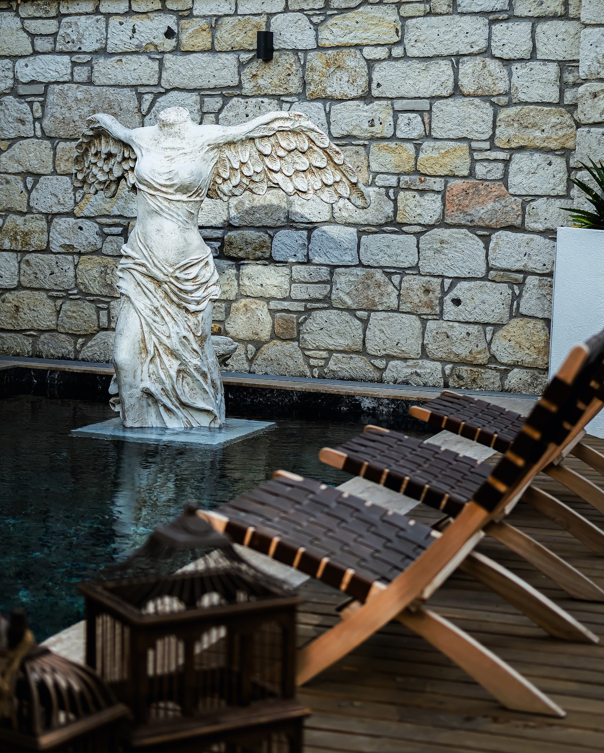 After ten years of experience in the center of Alaçatı, which is one of the most popular holiday locations in Turkey, a fresh boutique hotel management begins with a brand new approach. Approved by The Council of Monuments and designed entirely of natural stones in accordance with the 200-year history of Alaçatı, our hotel has a total of 8 rooms, 3 of which have bay balconies.