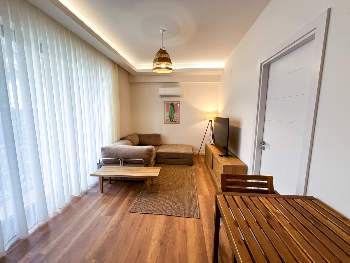Alaçatı merkeze 5 dk uzaklıkta bulunan 1+0 mutfak ve banyolu daire. Ortak bahçe ve havuz mevcuttur. Daire -1 kot girişi olmasına rağmen önü ferah ve açıktır. Girişlere fotoğraflardaki merdivenlerden inilir. Binamız sıfırdır, ilk misafirlerimiz olacaksınız. Sizi ağırlamaktan büyük memnuniyet duyacağız. ❗️Havuz ve bahçe misafirlerimize ortak kullanımdadır.