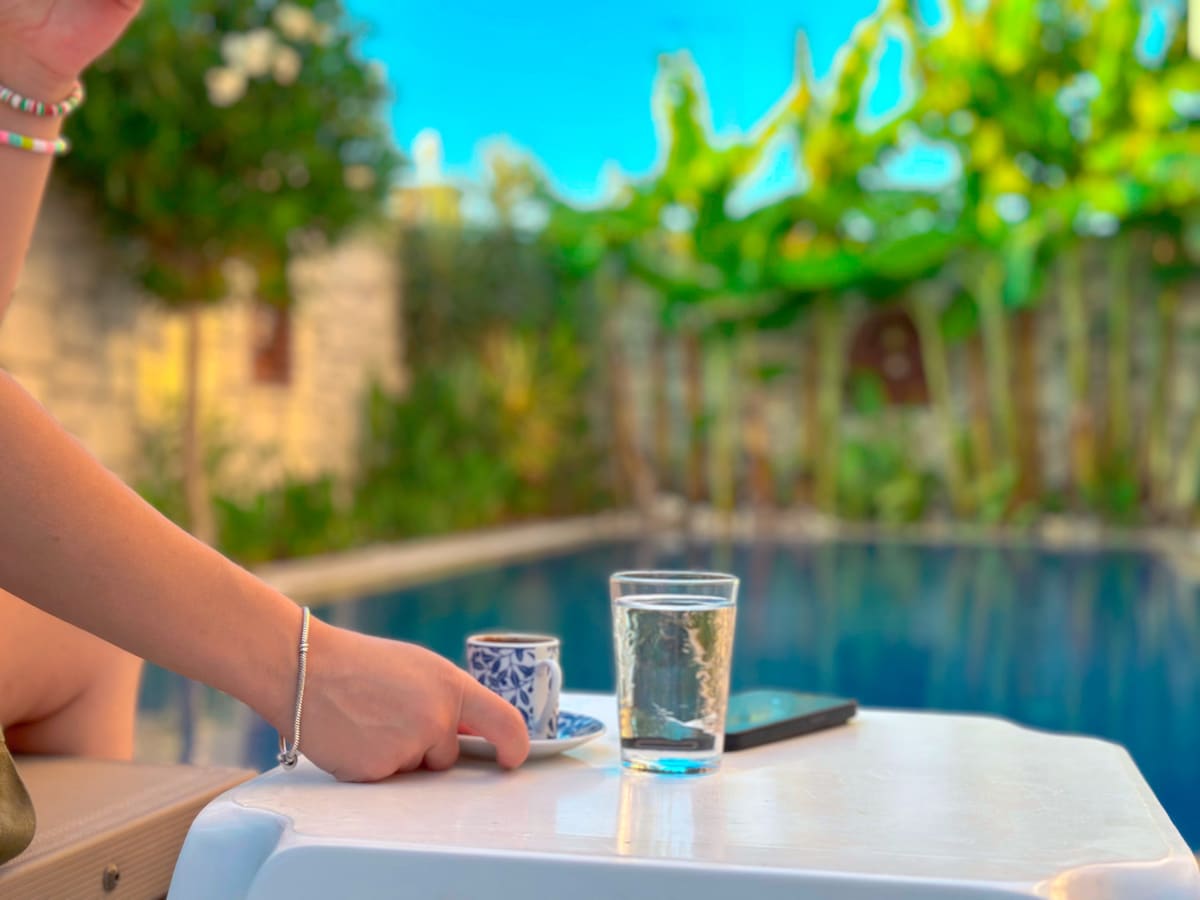 Çeşme merkeze 4-5 dk sürüş mesafesinde bulunan villamızda kalabalıktan uzak ama merkez ve plajlara yakın konumda olacaksınız. Yürüme mesafesinde market vs. olmadığı için araç kiralamanızı veya aracınızla gelmenizi tavsiye ederiz.Odaların hepsinde klima mevcuttur. Havuz tam otomatik doğal tuz jeneratörüyle kimyasal kullanılmadan dezenfekte edilmektedir. Keyifli tatiller dileriz 🌸