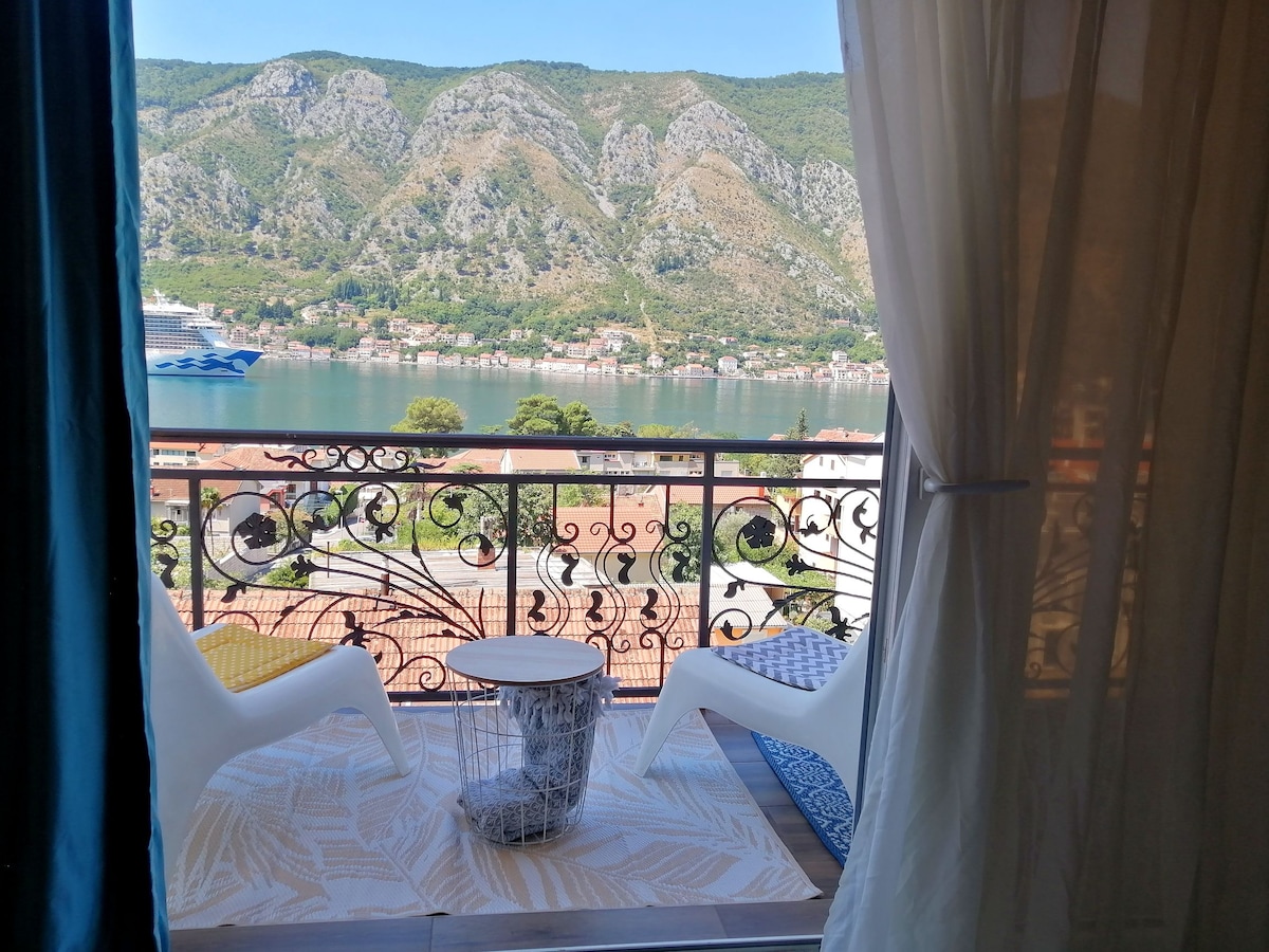 PERFECT FAMILY HOME! This spacious 50 m2 appartment is only 50 steps away from sea. You will love it for many reasons but especially for the stunning view. The appartment is in the sunniest part of Kotor Bay, a beautiful and ellegant zone, near the enchanting XVIII century Church Saint Eustahije. Position is pefect for exploring the jewels of Boka Bay - both Old town Kotor and Perast are only 5 km away. You will have your own portable WIFI to share your best moments wherever you are