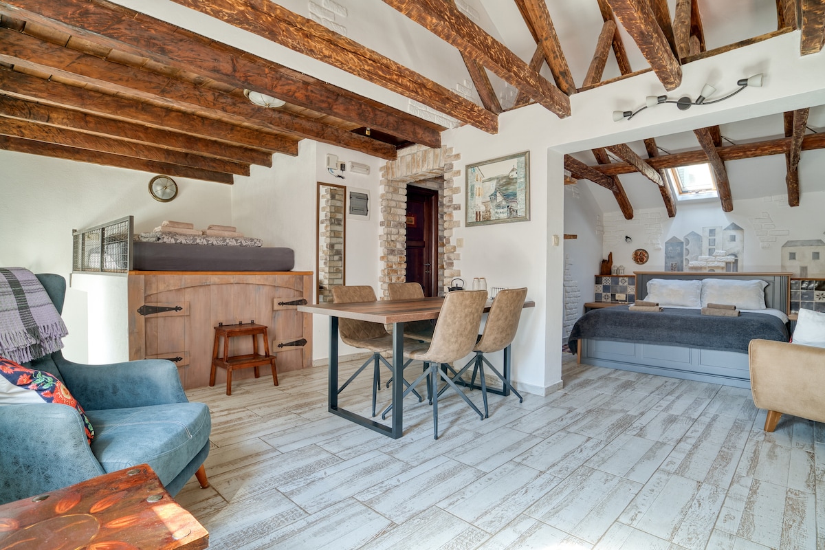 Plunge into medieval charm of our XV-century romantic and stylish Old Town Rooftop Loft with gorgeous views over historical center skyline while being surrounded by modern comfort and serenity. Newly renovated with love, our home has everything one might need for enjoyable stay: king- and queen- size beds, strong WiFi, dining area, TV, AC, couch, washing machine, fully-equipped kitchen and beautiful shared terrace. Centrally-located with restaurants, bars, shops, cafes just over the corner.