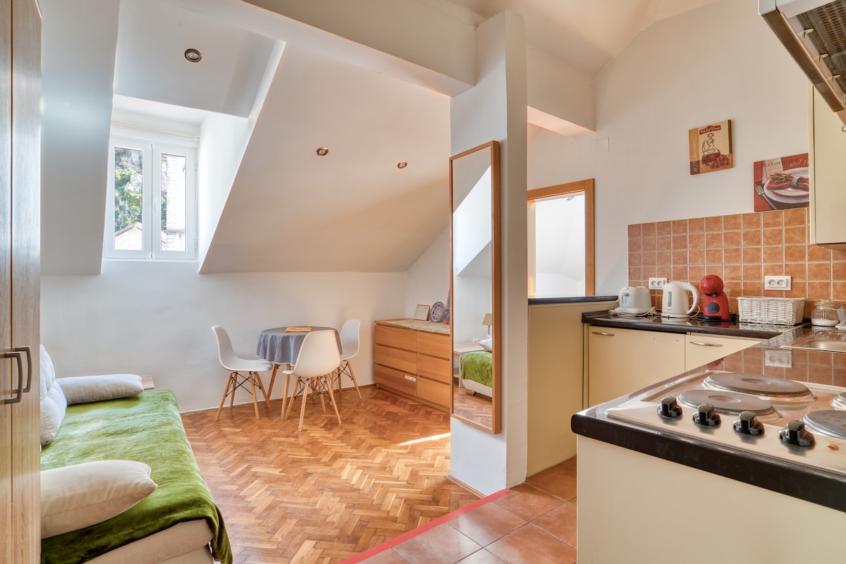 This Old Town cosy studio apartment is the ideal accommodation for couples or friends looking for a comfortable and central stay in Kotor. The guests can enjoy the city walls view from the apartment windows. The studio is in the heart of the historic center of Kotor,near Saint Nicholas church and the St. Tryphon Cathedral, but at the same time far away from noisy bars so the guests can have a good night sleep. Elegance and taste are what best describes the interior of this cosy studio.