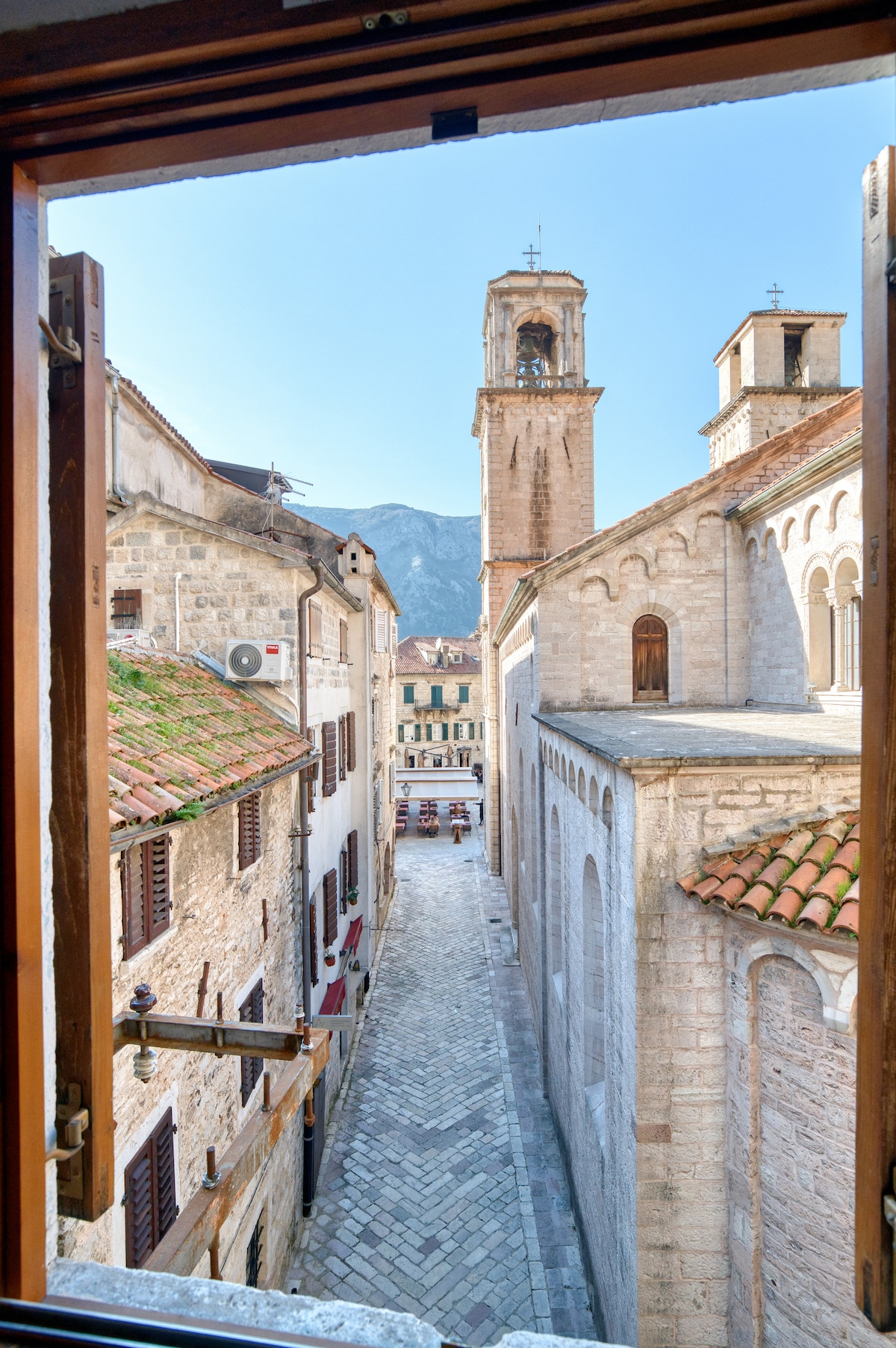Bright and cosy, elegant studio apartment overlooking St. Tryphon Cathedral. Located on the second floor of a medieval stone house in one of the most picturesque parts of Kotor Old Town. Spacious dining area, strong AC, fully-equipped kitchen with coffee machine, Wi-Fi, washing machine not mentioning the best window view in Old Town would make your trip to Kotor memorable. Tucked away in a picturesque walkway yet very centrally located. A few minutes from bus station, beach and restaurants.