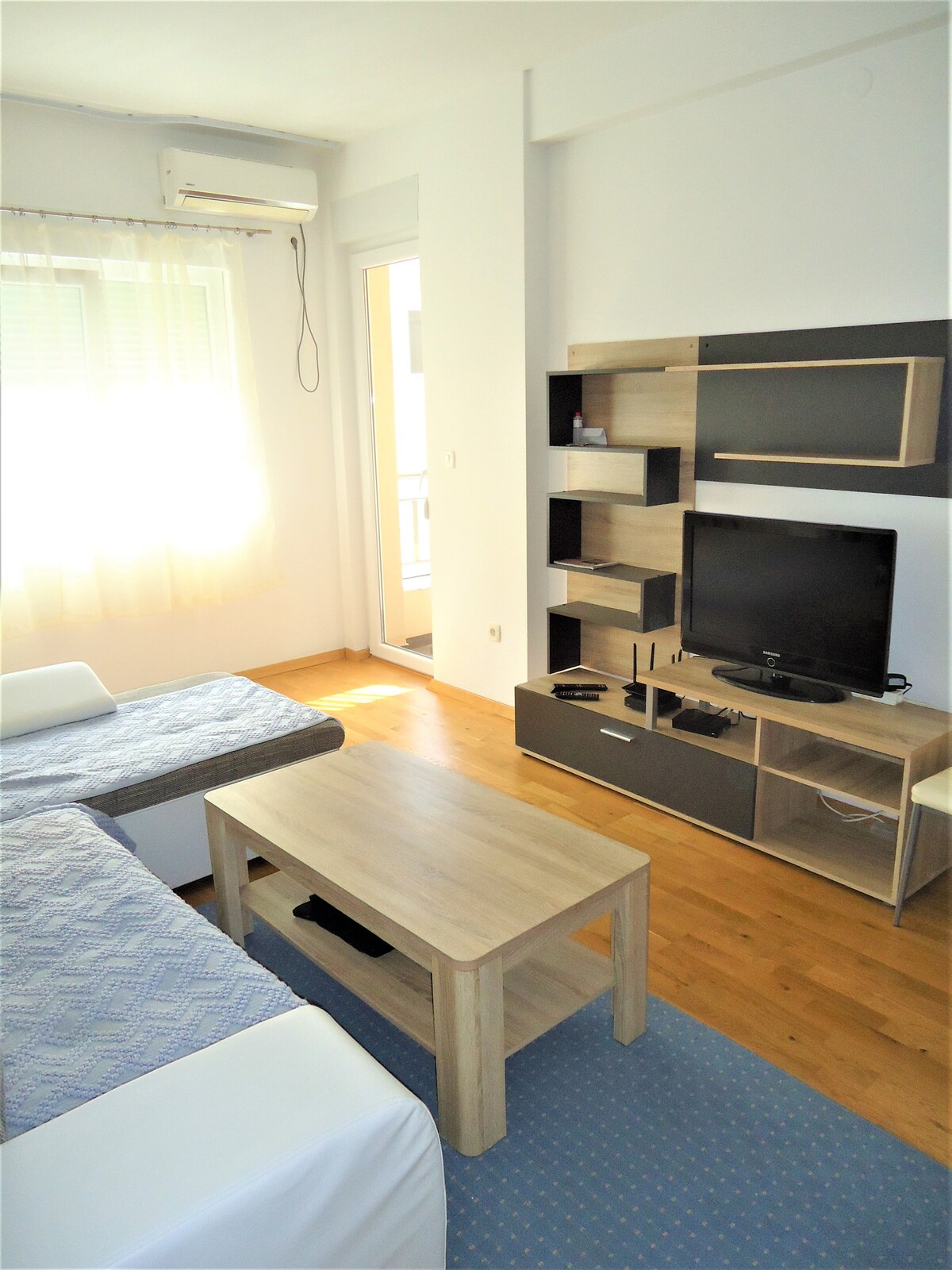 Just be happy in this spacious and serene space. The building is surrounded by olive trees, and in just 5 minutes walk, you will reach Becici beach, promenade, restaurants, supermarkets. The local bus stop is located 300 m from apartment, the Main Bus Station is 5 km away and Tivat Airport is 22 km away. The old town Budva is 5 km away. Guests are provided with free parking, LCD satellite tv, wi-fi, and as well as small items for everyday needs, such as hair dryers, irons, etc.