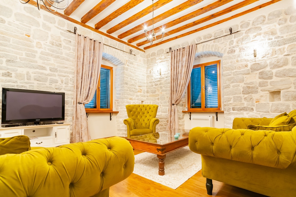 Step into our Romantic Chic & Stylish Heirloom Suite in the heart of the Old Town. This bright, well-appointed, and sparkling clean suite boasts antique decor, creating a nostalgic atmosphere. Located in a centuries-old stone house, it offers modern comfort with a retro twist and the enchantment of the past in every corner From the cozy living room to the snuggest bedroom and fully-equipped kitchen, immerse yourself in the charm of Milk Square, evoking the bygone eras of Kotor's rich history.