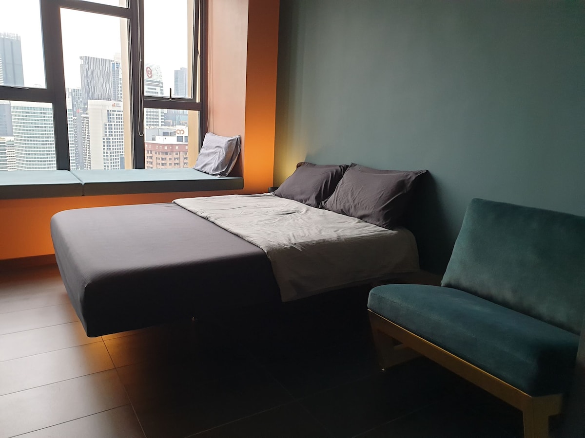 This 1 Br apartment comes with a breathtaking view of KL skyline. It has a 3-seaters sofa living room, dining table, kitchen, desk and a big balcony facing the KL Tower & Petronas Twin Towers. It comes with a 55” TV, Hi-Speed WIFI and a Queen size bed that can fit you comfortably. *The other unit of this Dual Key apartment is a compact Studio with Queen size bed, pantry, washroom & bath. It can fit in friends who travel with you with privacy. Welcome to ask for more details!