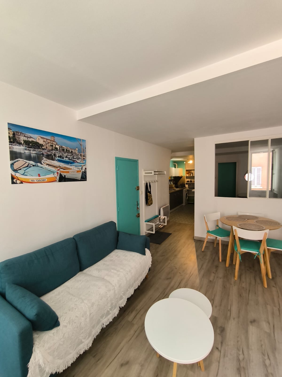Tres bel appartement de 42 m2 avec terrasse sur le port de Cassis , la sardinette dispose d'une vue exceptionnelle sur la mer et le cap Canaille.Entierement rénové par une architecte d’intérieur Prestations haut de gamme et tout le confort souhaité (climatisation, lave vaisselle, lave linge séchant, four micro-ondes , machine nespresso). Ce petit écrin se situe à 5 mns à pied des plages et à proximité des célèbres calanques de Cassis.