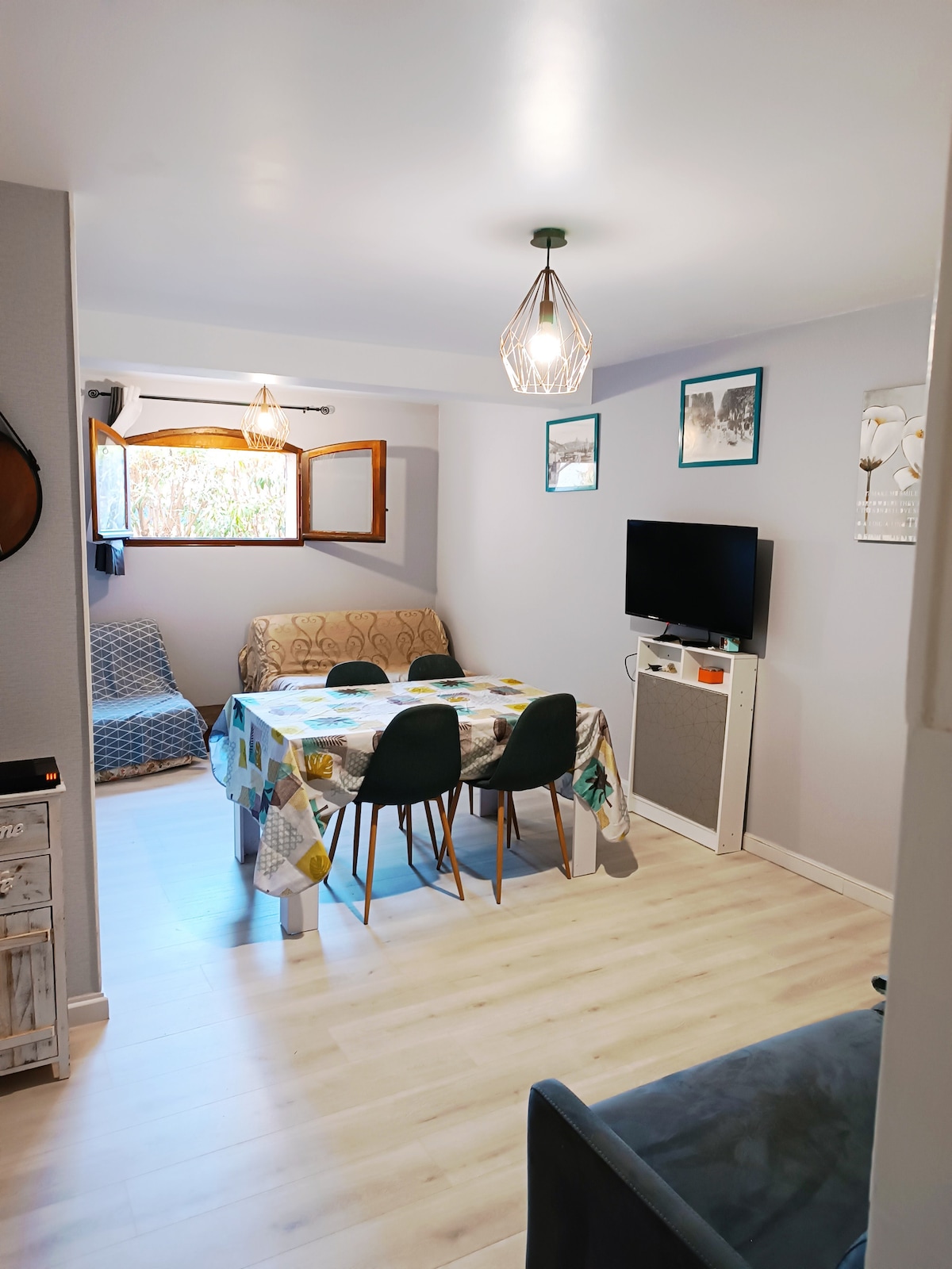 Bonjour, Nous vous proposons de passer votre séjour dans une maison classée 3* entièrement rénovée en 2020 de 42m2 et de sa terrasse ensoleillée de 20m2, avec: - climatisation - lit 160 avec matelas neuf - canapé lit dans le salon - lave linge et lave vaisselle - table et chaises de jardin, transat, stores banne - place de parking dans la propriété - et plein d'autres choses: lisez Bienvenue chez nous, nous mettrons tout en œuvre pour que vous passiez un agréable séjour!