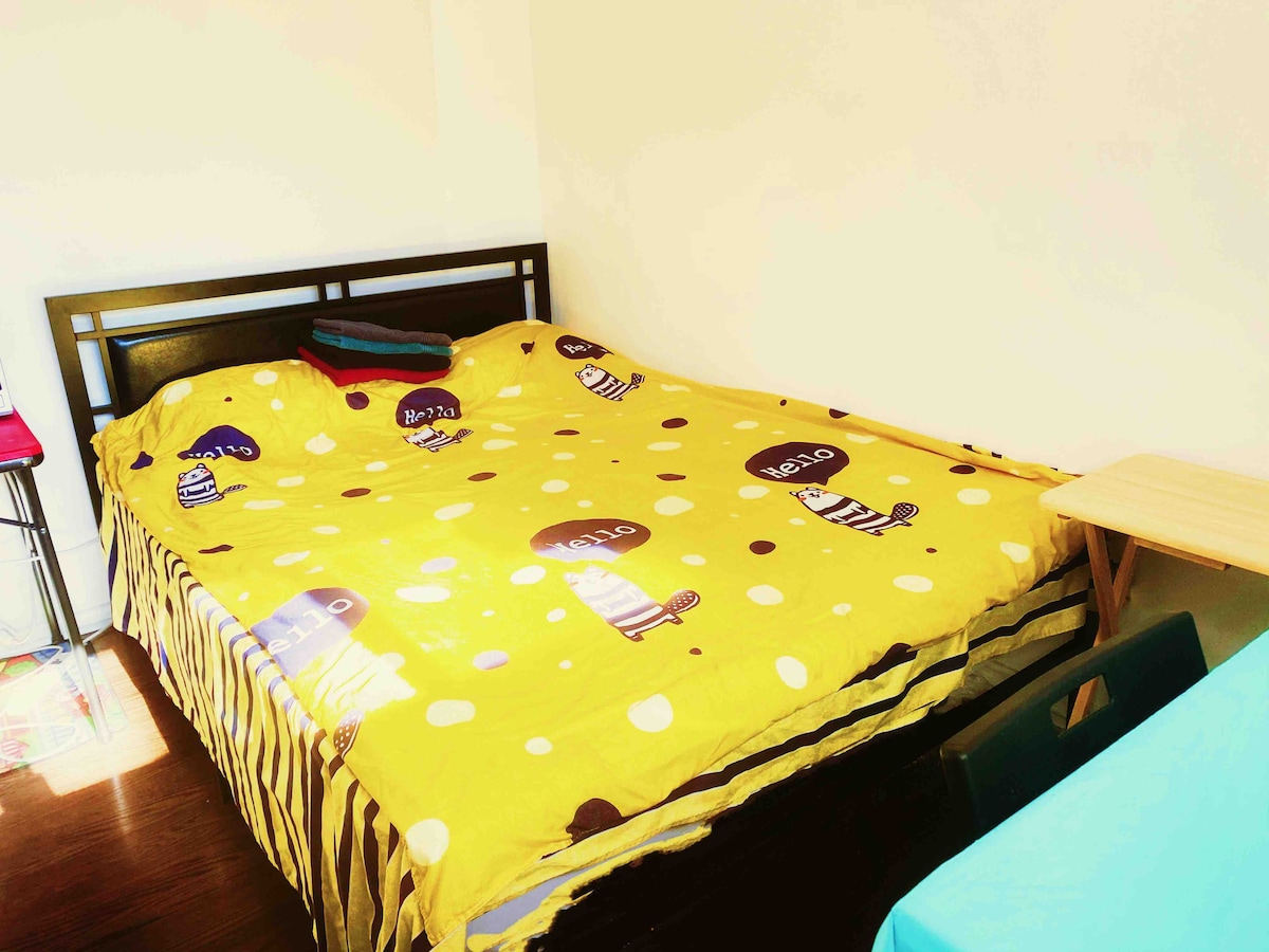 No 3rd party booking! No parties! No visitors! ARRIVING W/ EXTRA GUEST WILL GET CHARGED DOUBLE! Smokers are not welcome! Bright and cozy basement 1 room 1 bathroom, perfect for a comfortable stay. Enjoy high-speed 1Gbps WiFi, a plush queen-sized bed, and closet space. A private living room area with a 43-inch Google TV. A workspace equipped with a desk, lamp and whiteboard, along with thoughtful touches like a fan and essentials on the desk.