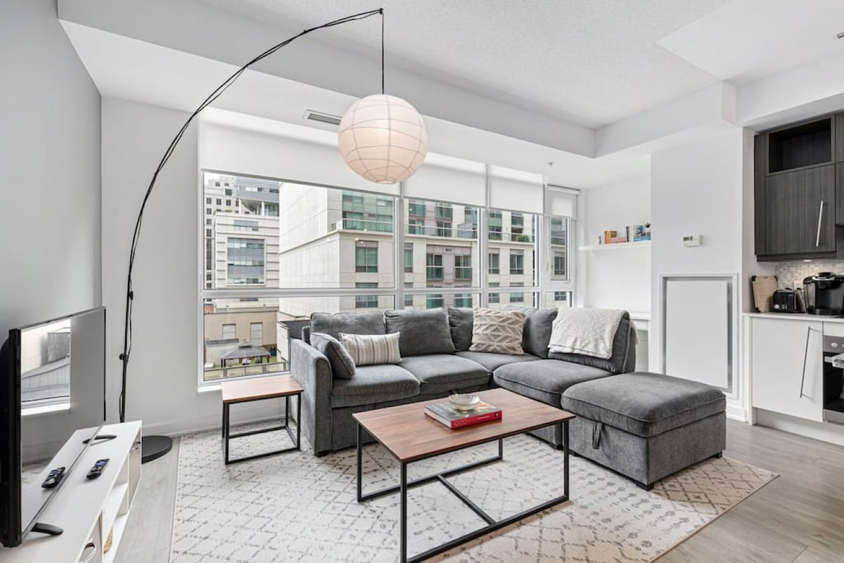 This boutique condo, in the heart of Toronto, is just steps from the city’s best restaurants, shops, bars, and live music venues. With easy access to Toronto’s Financial District, Discovery District/Hospital Row, AGO, Entertainment District, CN Tower, Ripley’s Aquarium, City Hall, home arenas for the Blue Jays, Leafs, and Raptors, everything you need is within reach. Ideal for business trips, relocations, couples getaways, or family vacations, this suite comfortably accommodates up to 4 guests.
