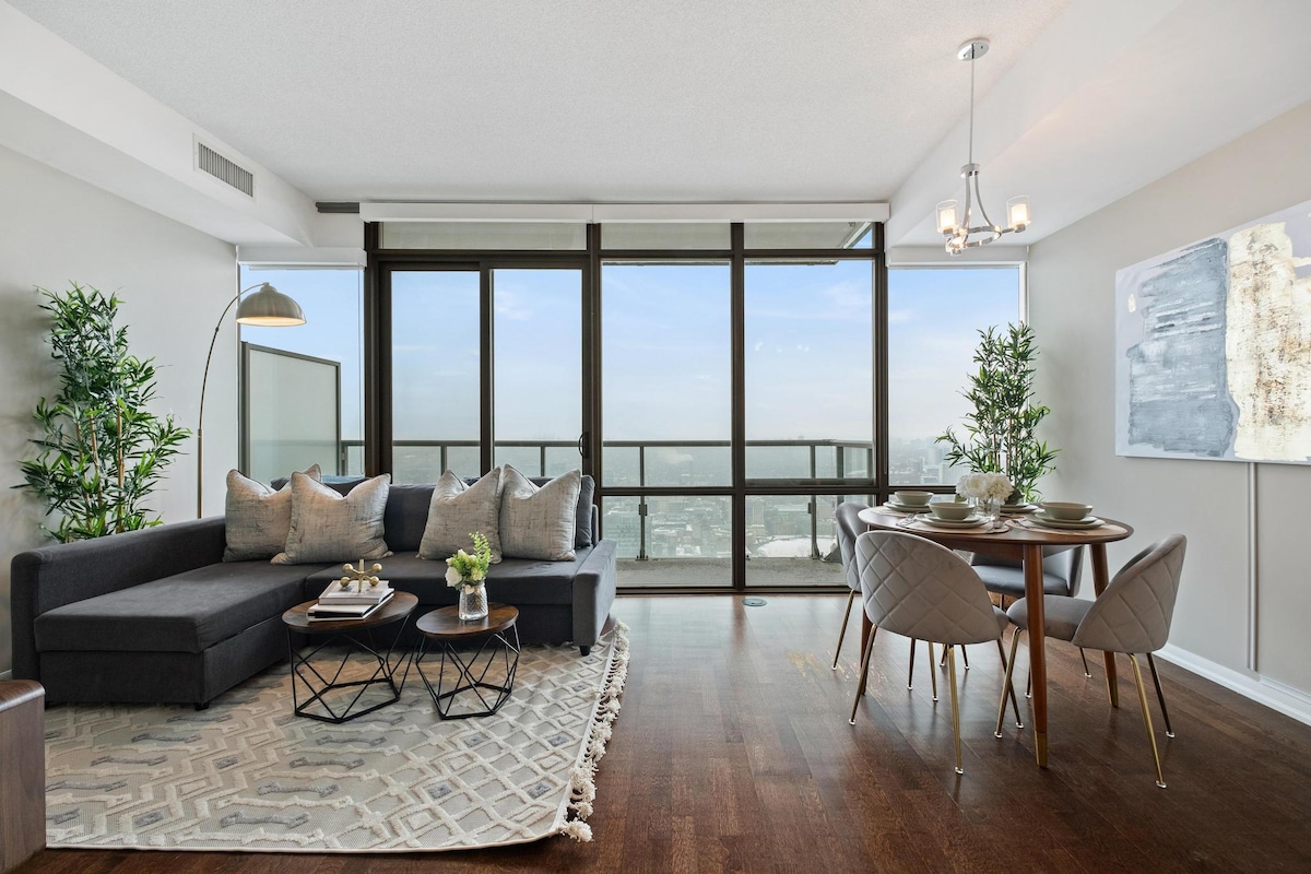 Nestled in the heart of Toronto's vibrant core, located next to the iconic Yonge-Dundas Square, our condo offers unrivalled convenience and style. Step into a world of comfort and sophistication. The condo boasts modern amenities, chic décor, and plush furnishings, providing a serene oasis amidst the bustling city. Immerse yourself in the dazzling city views that stretch beyond the windows, or venture out to explore nearby dining, cafes, and bars, embodying Toronto's diverse culinary scene.
