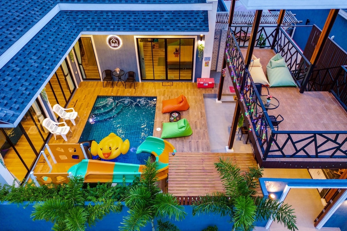 Baan Arthur, quiet & peaceful pool villa that would make you feel like staying at your own home. > Private villa for family and friends who really need a quiet place to stay. (up to 10 guests) > Private Pool with Slide and Safety equipment for kids. > 55” Smart TV and karaoke. > 2in1 Pool table and Air Hockey. > Seafood delivery (both fresh and cooked) + Food delivery + 7-11 Delivery. > 5 mins drive to 7-11, 20-25 mins drive to ChaAm beach. > 24hr support by the host team.