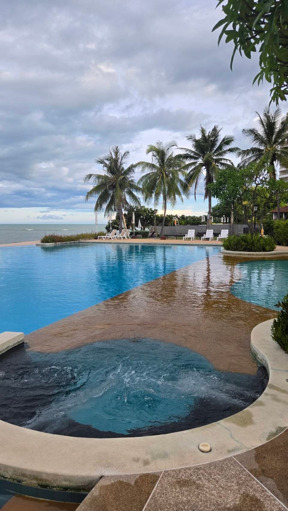 Enjoy a calm, private beachfront vacation with a 105 sq.m. top floor spaces. - Relax with spectacular sea views located at Cha am, Thailand. Amenities include a private beach, 2 public pools, sauna, front office, laundry, maid services, THAI massage, Wi-Fi, 24-hr security, fitness, and a beautiful garden. Just 20 km from Hua Hin and a 2.5-hour drive from Bangkok. Perfect choices for couples, families, or groups of friends seeking a relaxing getaway.👍🏻
