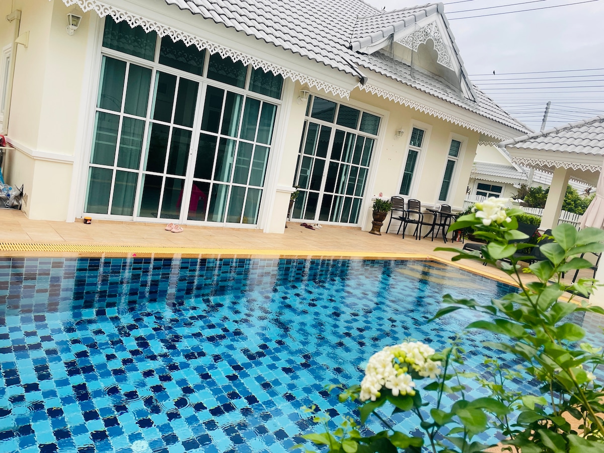 Vimanlay Hua Hin : 3 bedroom suite - Pool Access. The 3 bedrooms, 3 bathrooms area 145 sqm. with pool access, living room, kitchen, Jacuzzi and balcony. Our accommodation is family friendly or retired guest for long stay. And suitable for 4-7 persons stay together. Our accommodation is serviced apartment. We provided cleaning serviced every week : change all linens, towels, pool towels, clean up all rooms. Free Wi-Fi in room