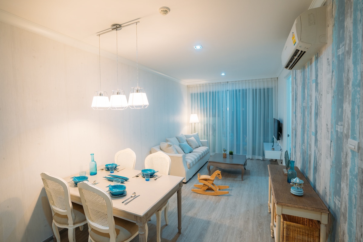 Luxury apartment/condo with 4 star Services aparment at Amari Hua Hin Takiab beach town. best for Holiday Vacation and Business Trip. Beach front club house with swimming pool, cafe and restaurant Large common areas and garden accessing to 3 major swimming pools Kid club and play round Walking distance to the beach, cafe, gym, Cicada night market. Modern marble bathroom + separate shower and toilet. Modern kitchen and appliances - making you a " Perfect Harmony holiday"