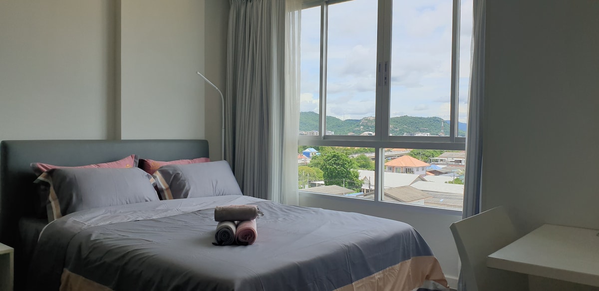 Stylish room 30 sqm. studio with city and mountain view. Free cleaning during your stay (daily cleaning serviced for daily rate and two times per week for Monthly rate contract). Fully furnished and equipped kitchen. Free Wifi. Around 10 mins walk to Hua Hin beach. It's located right next to the Hua Hin Market Village the most popular shopping mall.