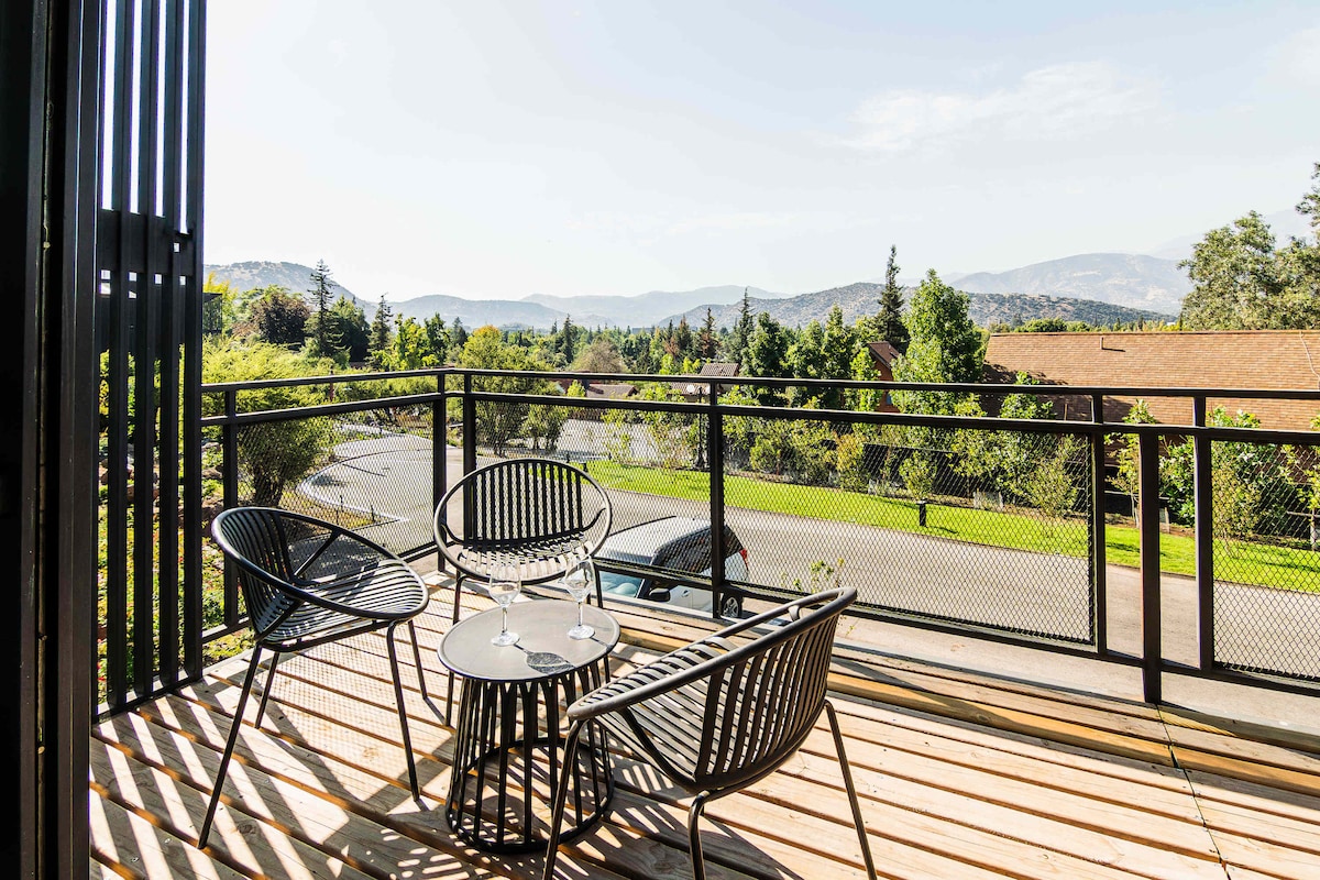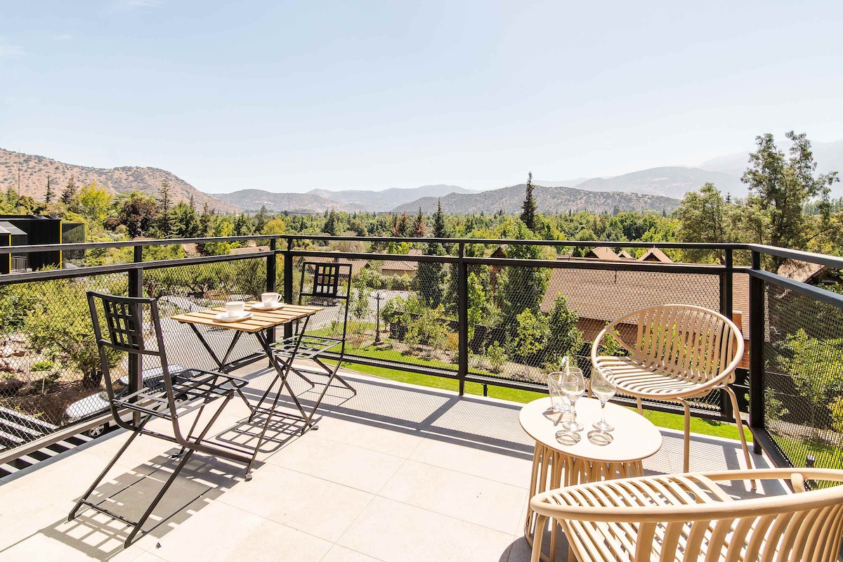 Maravilla a 7 minutos de Las Condes y a 30 de los centros de ski más famosos de Sur America. Aquí te permites gozar de privacidad rodeado de parque y majestuosa cordillera. Especial para vida de aire libre, vistas únicas, descanso pleno y grato. El ciclismo, trekking, paseos por el río y sus alrededores y muy cercano a los comercios y malls de vitacura, La Dehesa y Las Condes, los mejores restaurantes, centros gourmet, bares o shoppings de lujo para pasear a pie, o coordinando un taxi. Paraíso!