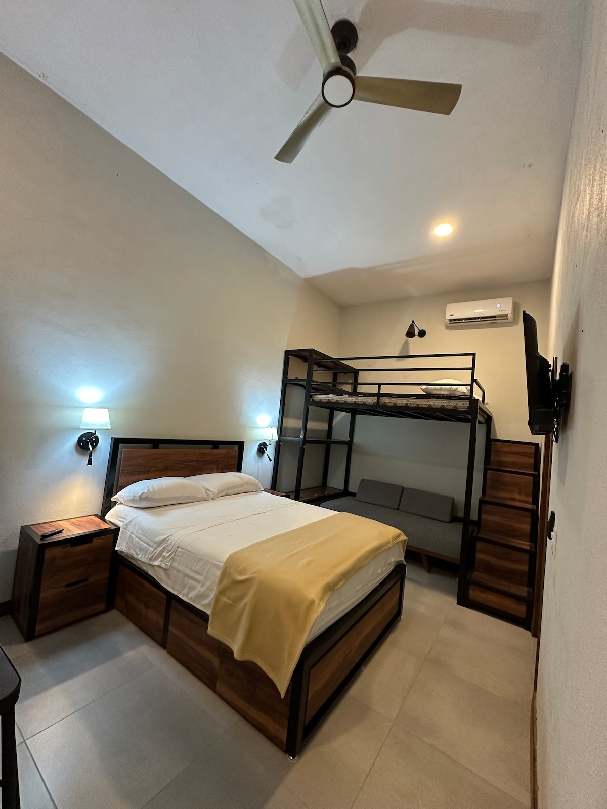 Relájate con toda la familia en este alojamiento donde la tranquilidad se respira. Este acogedor espacio te ofrece una experiencia única en contacto con la naturaleza. Con el sonido relajante de la selva tropical, cada rincón está diseñado para brindarte comodidad y paz. Disfruta de amaneceres impresionantes y noches estrelladas rodeado de la exuberante selva alejado de las personas pero a la vez a unas cuadras de la playa.